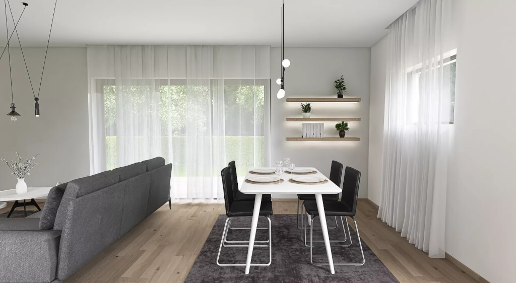Tepelná izolace zároveň zaručuje pohodlné bydlení s velmi nízkými náklady na vytápění. Zdrojem vytápění je kvalitní a úsporné tepelné čerpadlo vzduch/voda.