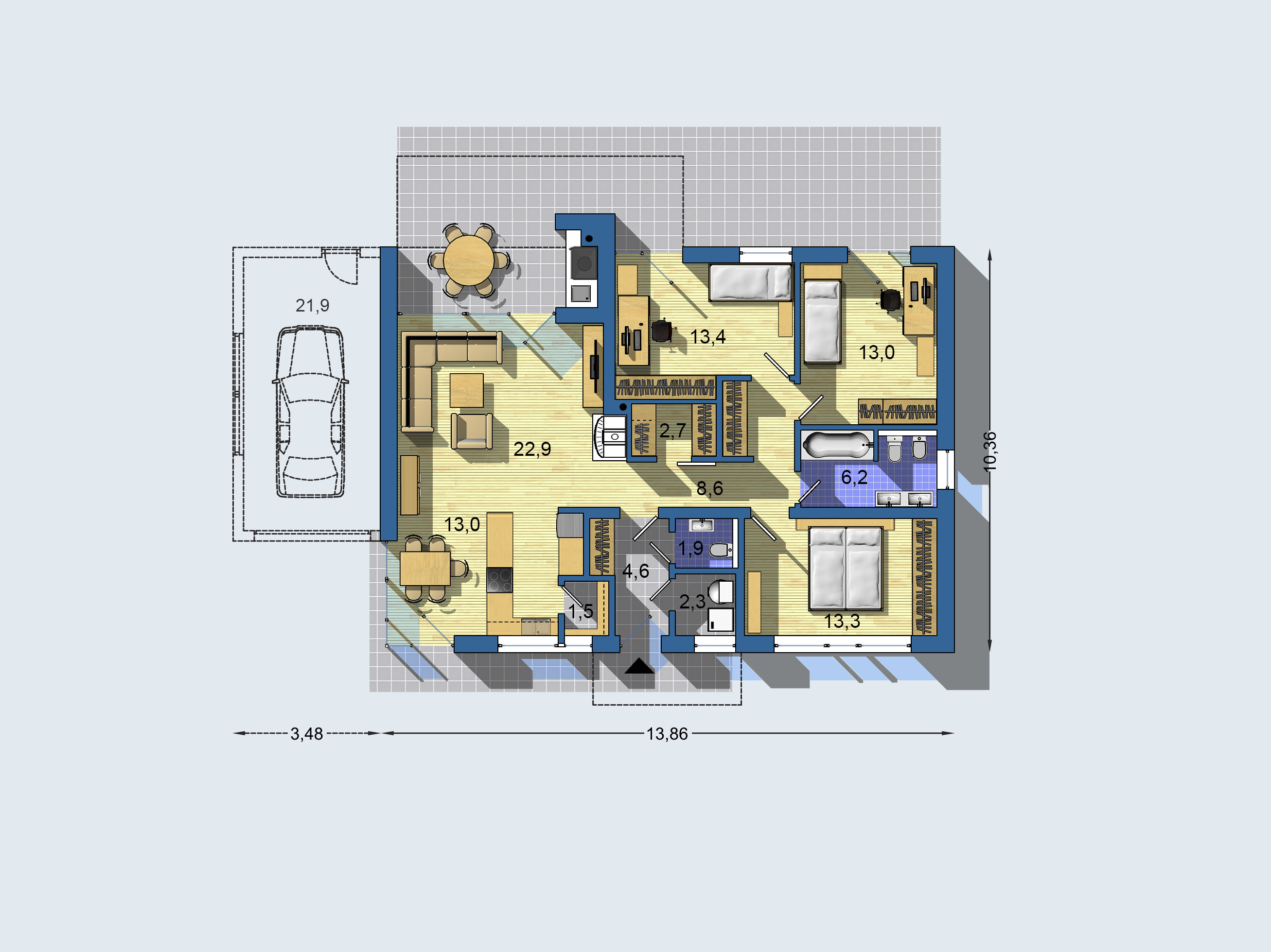 13,86 x 10,36 m