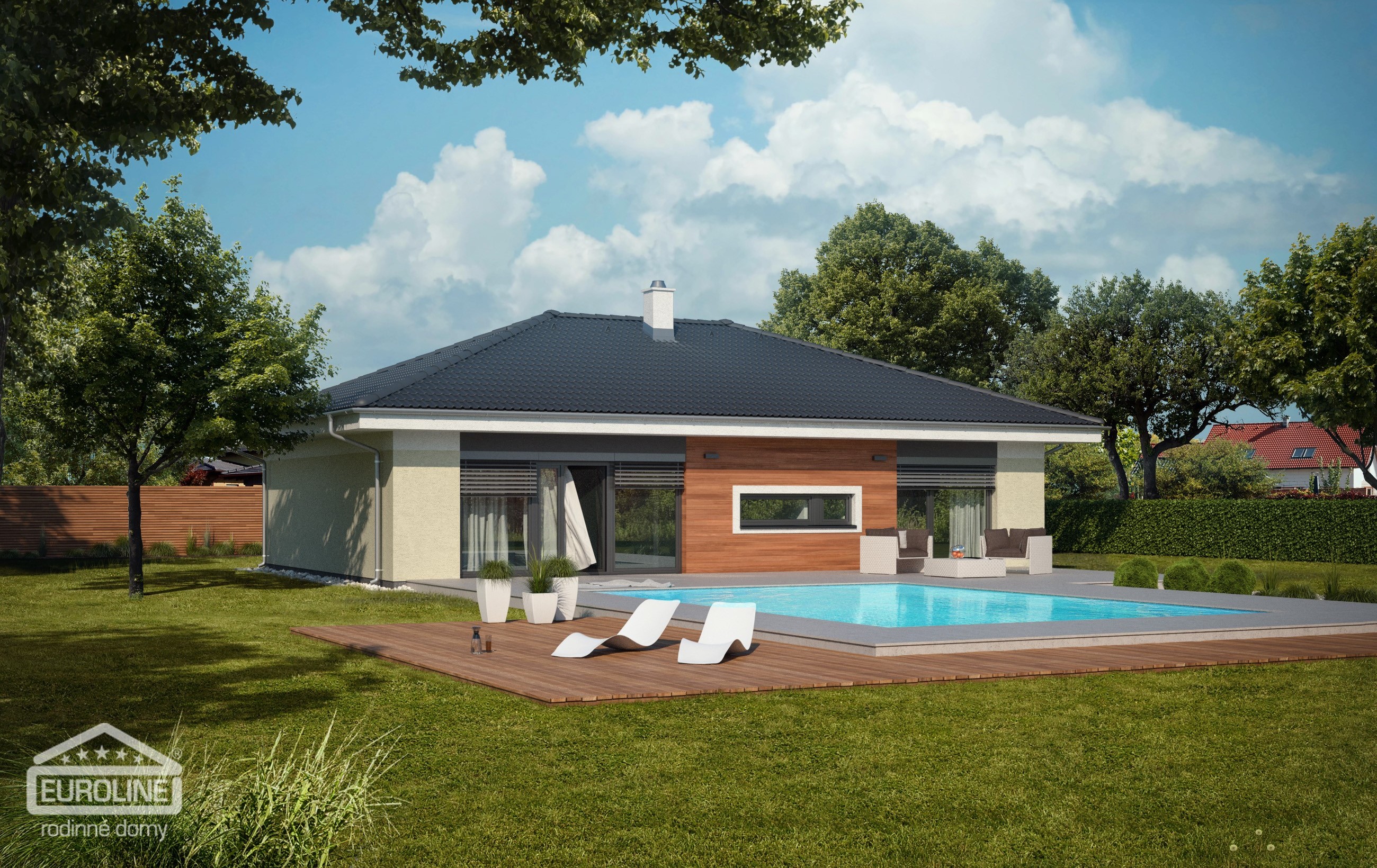 Praktický rodinný dům typu bungalov splňující nároky na pohodlné bydlení 4členné rodiny.