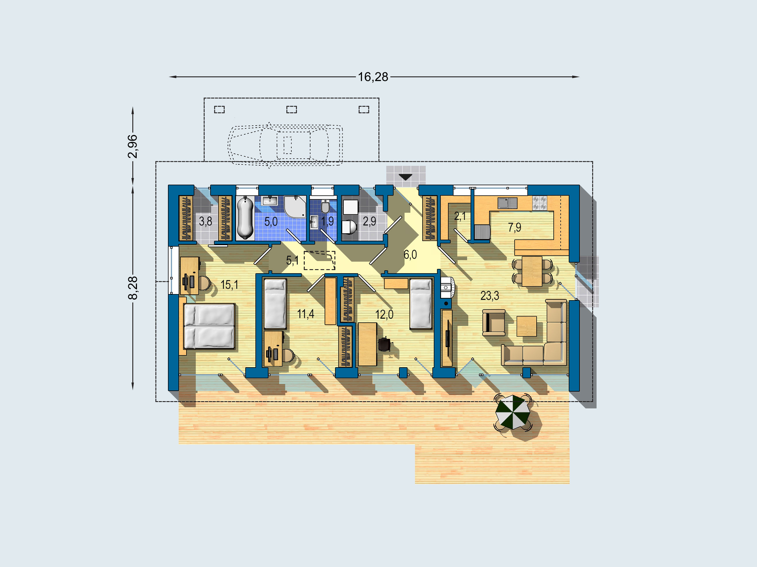 K domu je možné připojit zastřešené parkovací stání (není součástí projektové dokumentace).