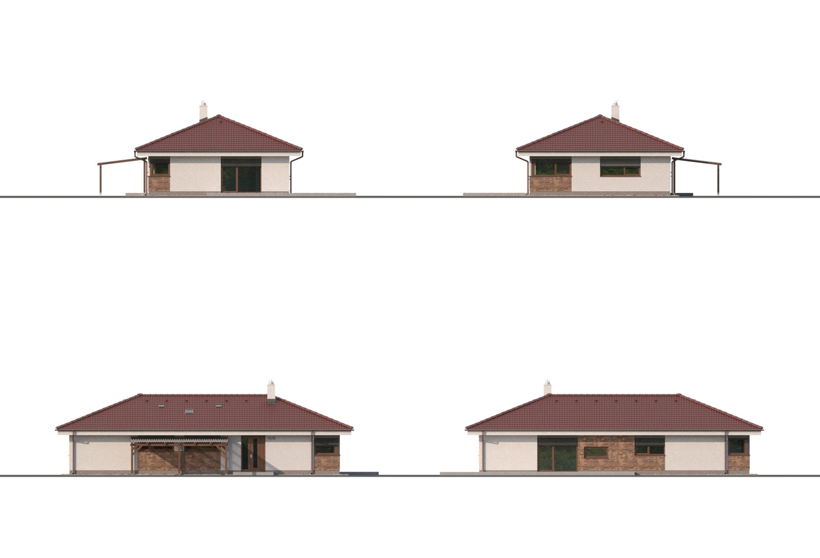 Klasický, středně velký rodinný dům typu bungalov. Dům je ideální pro pohodlné bydlení 4 až 5členné rodiny. Výhodou domu je jednoduché konstrukční řešení bez pevného stropu se sádrokartonovým podhledem.