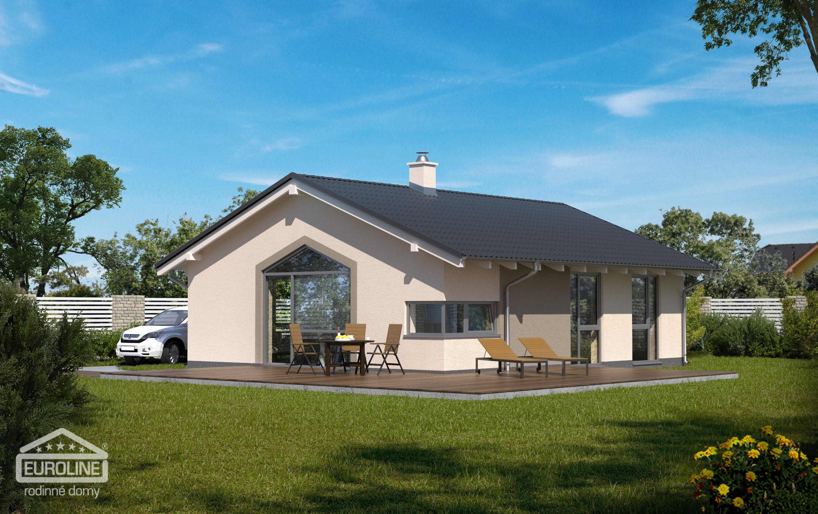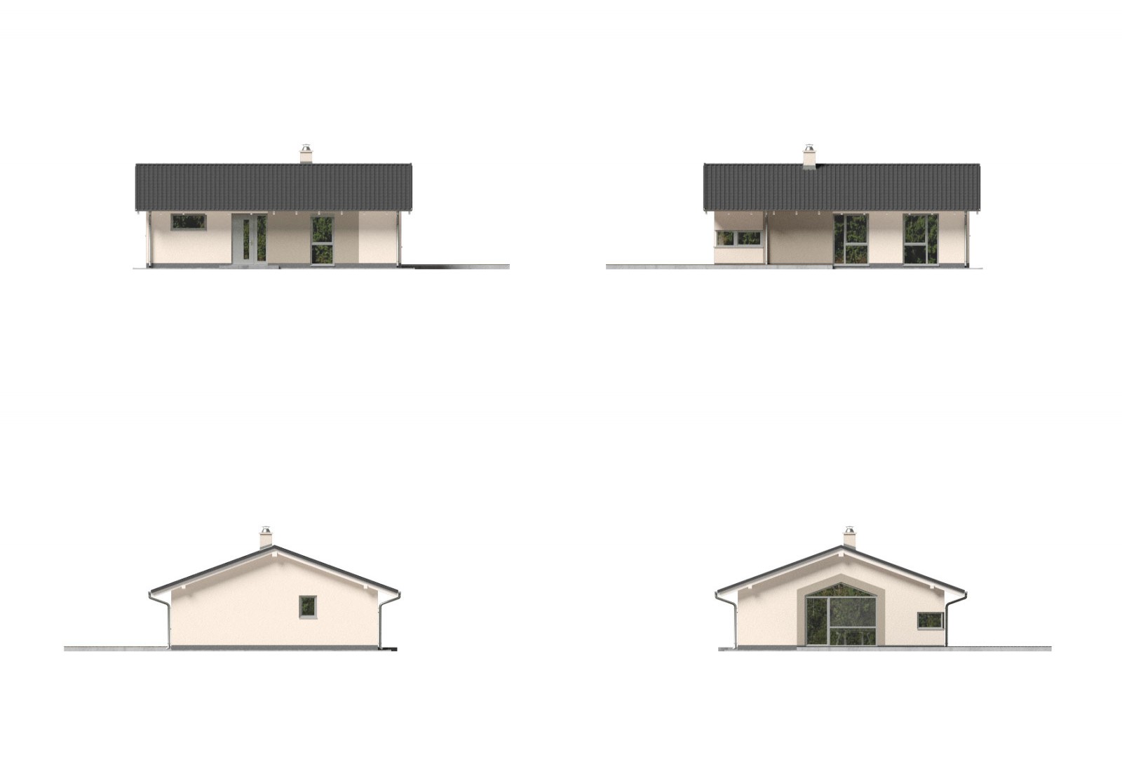 Praktický 3pokojový bungalov se sedlovou střechou a efektivně využitým půdorysem. Výhodou domu je jeho jednoduchá konstrukce bez pevného stropu se sádrokartonovým podhledem, což zajišťuje rychlou a nenáročnou výstavbu.