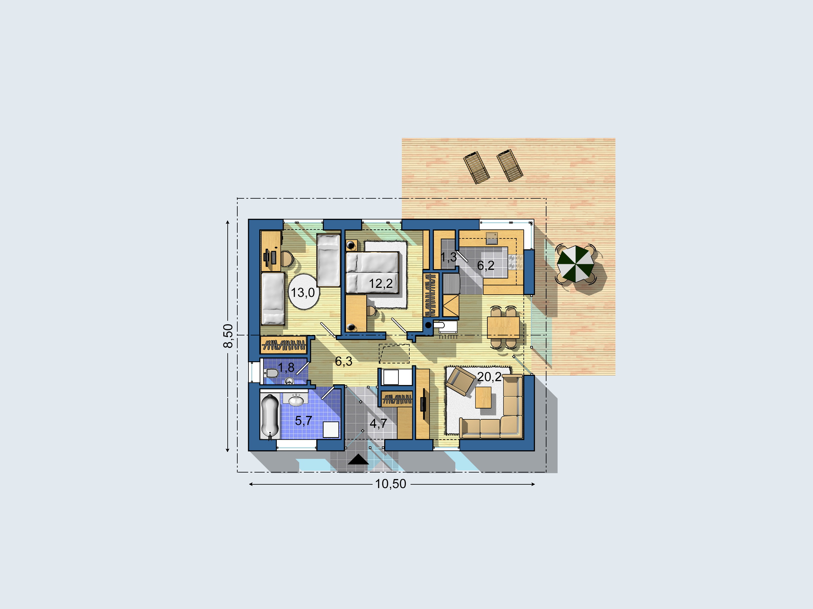 10,50 x 8,50 m