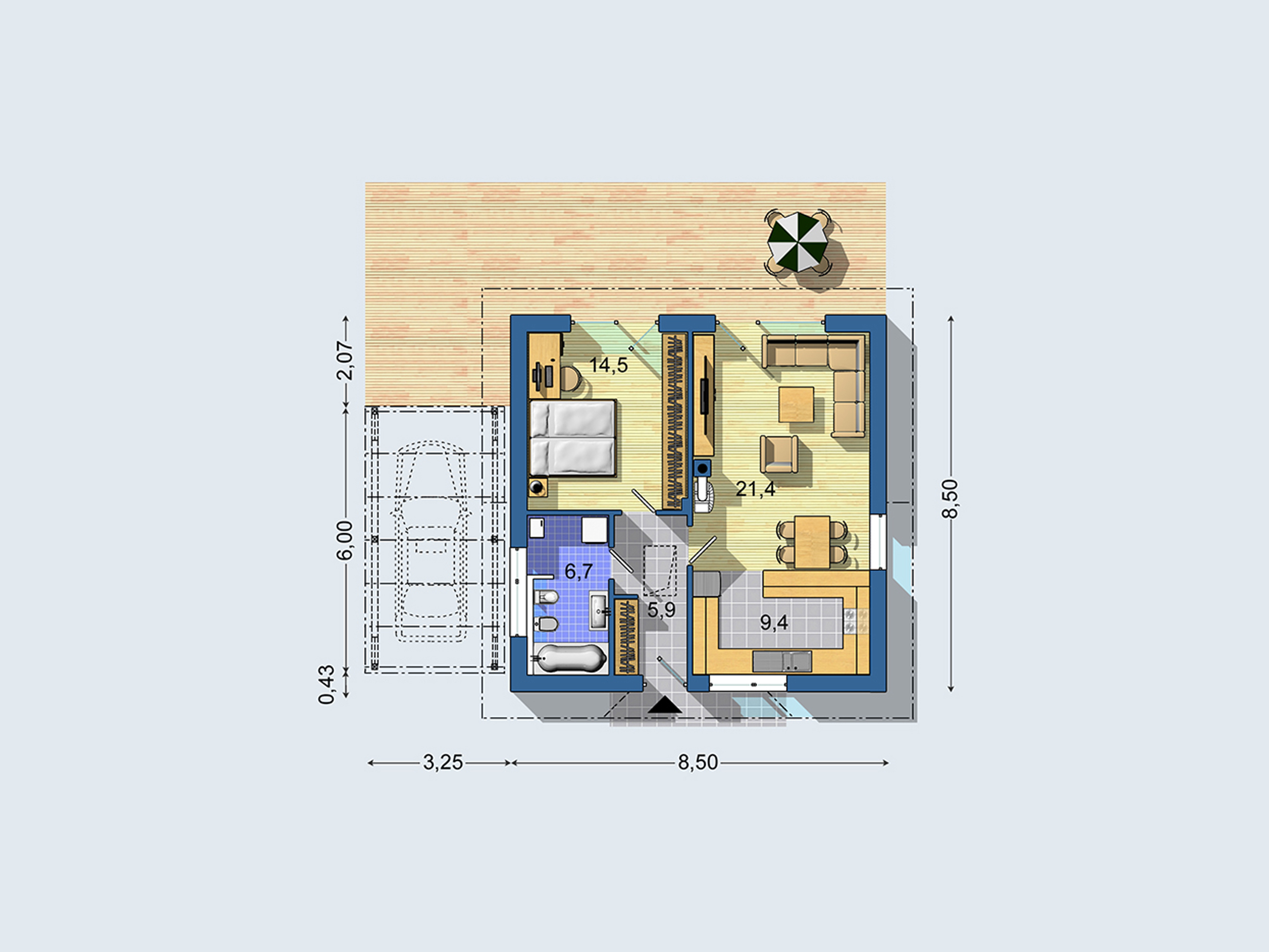 K domu je možné připojit zastřešené parkovací stání (není součástí projektové dokumentace).