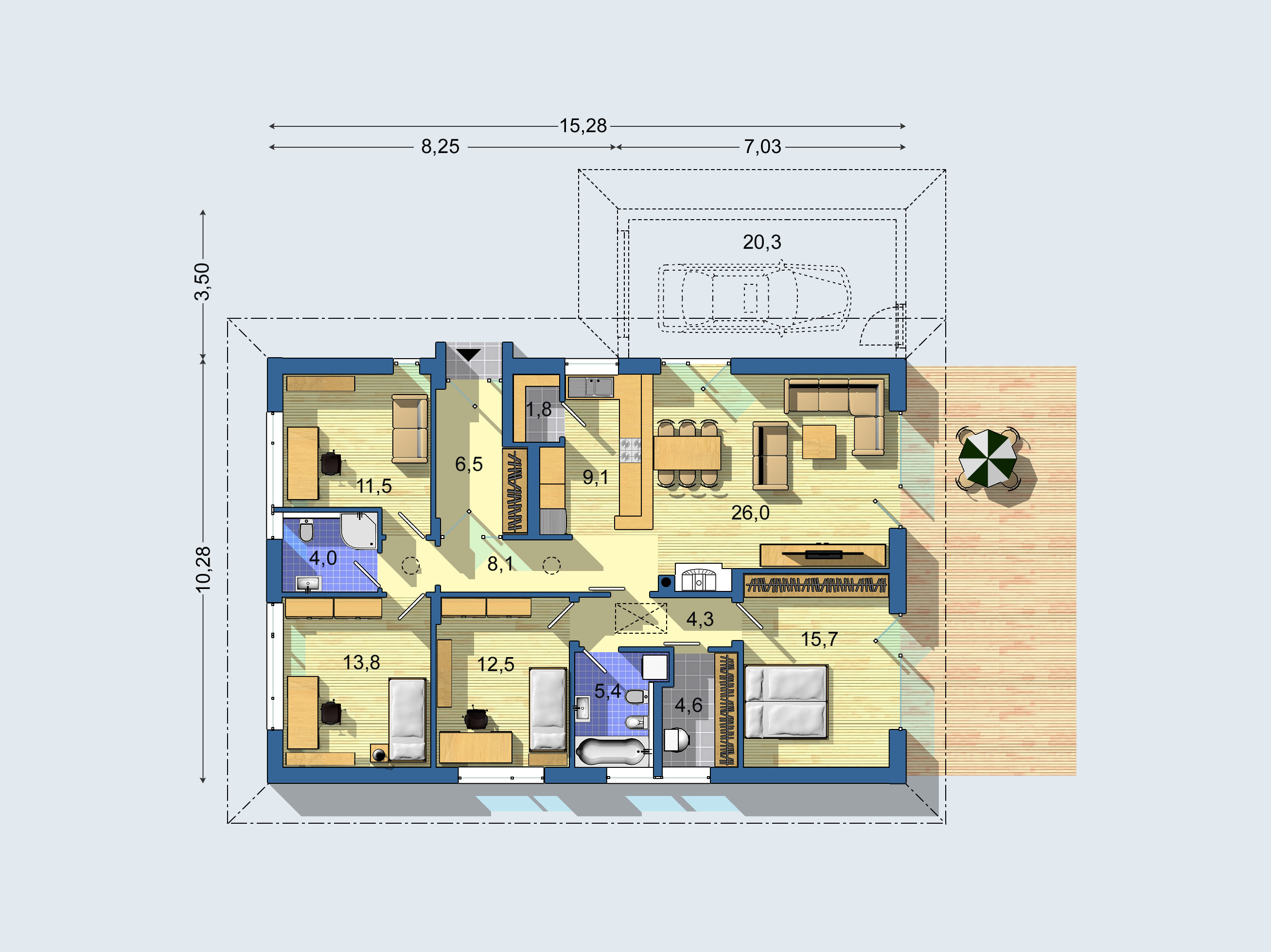 15,28 x 10,28 m