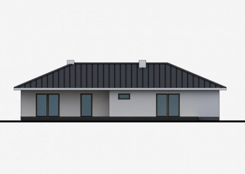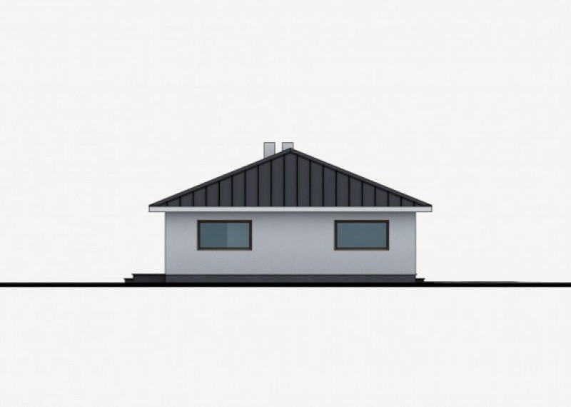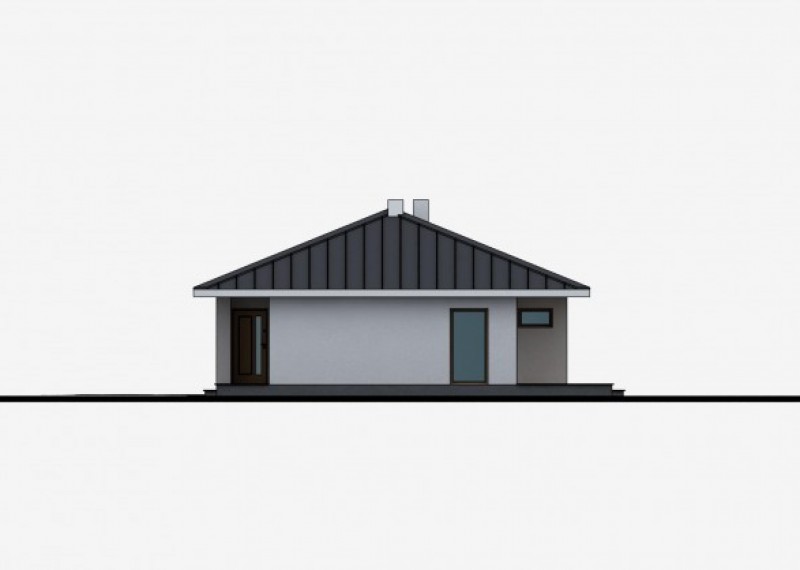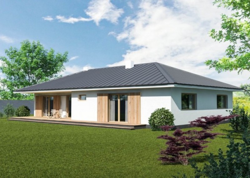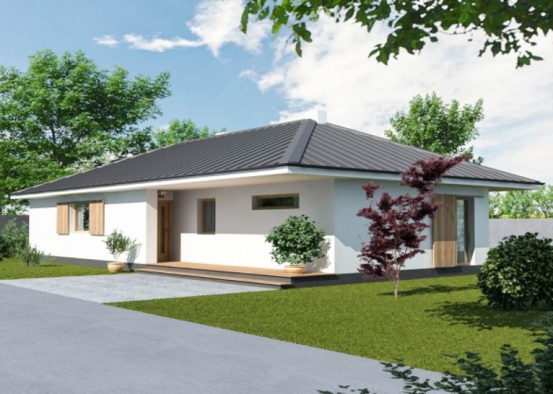 Jednoduchý 4pokojový rodinný dům typu bungalov klasického vzhledu. Charakteristickým a zároveň praktickým prvkem je přesah střechy, který chrání terasu i vstup do domu.