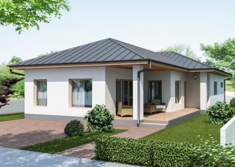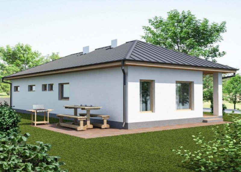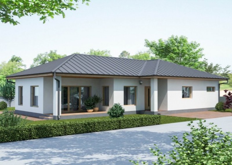 Kompaktní 4pokojový rodinný dům typu bungalov klasického vzhledu, ideální pro pohodlné bydlení 4členné domácnosti. Charakteristickým a zároveň praktickým prvkem je přesah střechy, který chrání terasu i vstup do domu.