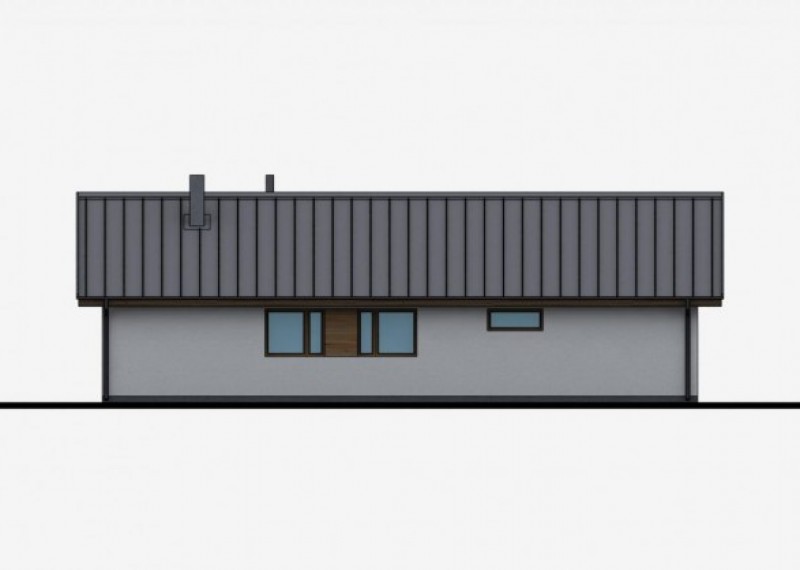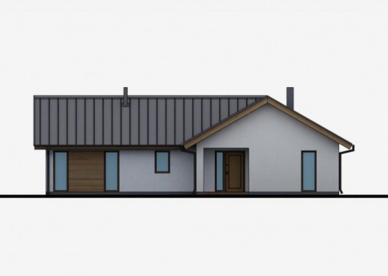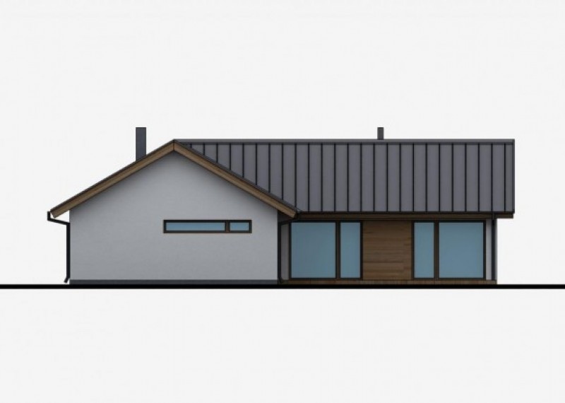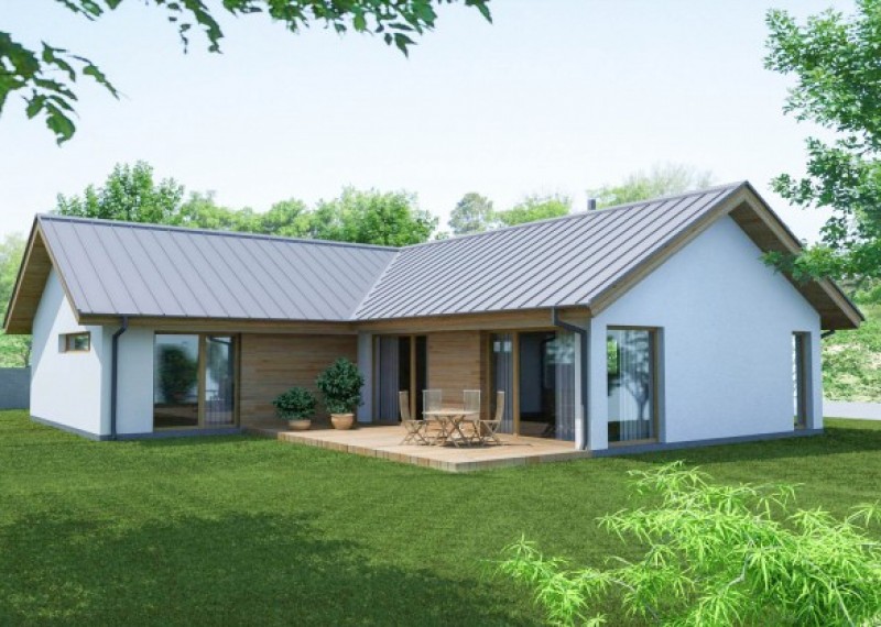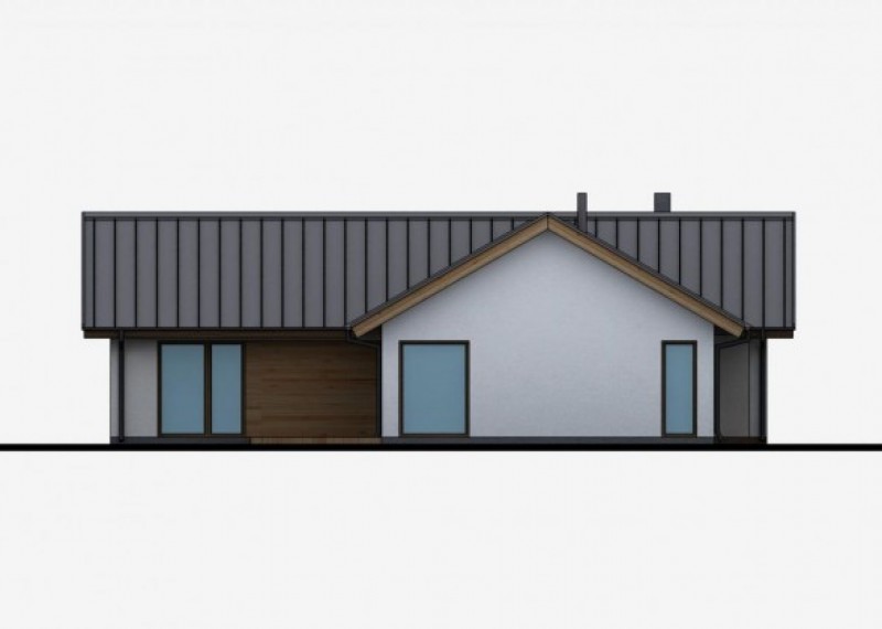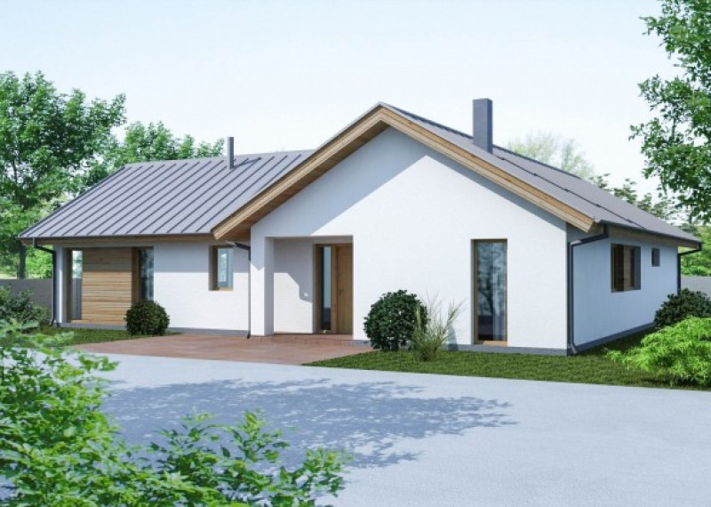 Středně velký, přízemní rodinný dům se sedlovou střechou na půdorysu ve tvaru L. Použití dřevěného obkladu na části fasády dodává domu atraktivní vzhled.