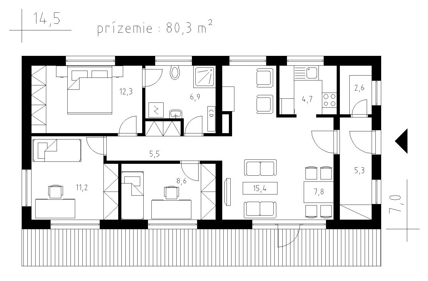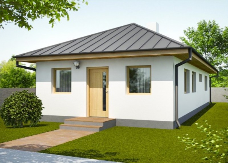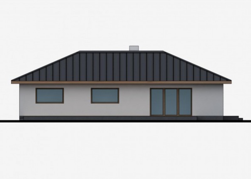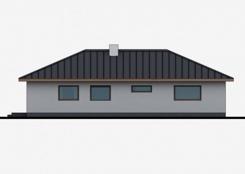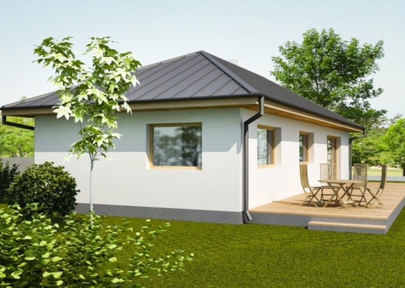 Jednoduchý, kompaktní 4pokojový rodinný dům typu bungalov. Jedná se o nejužší možné řešení bungalovu a je tedy vhodné na úzké parcely. Stále však jde o komfortní dům vhodný pro pohodlné bydlení 4členné domácnosti.