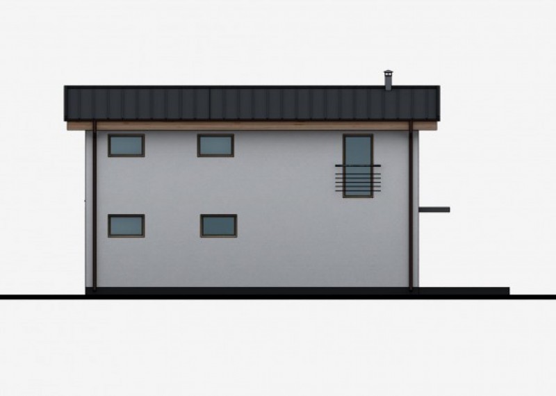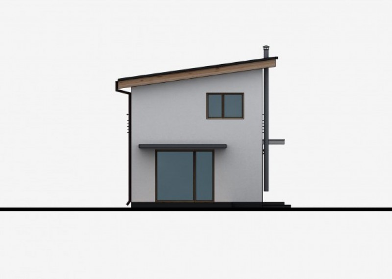 Moderní, dvoupodlažní rodinný dům s pultovou střechou a jednoduchými, čistými liniemi. Dům je vhodný pro umístění na malé a úzké parcely.