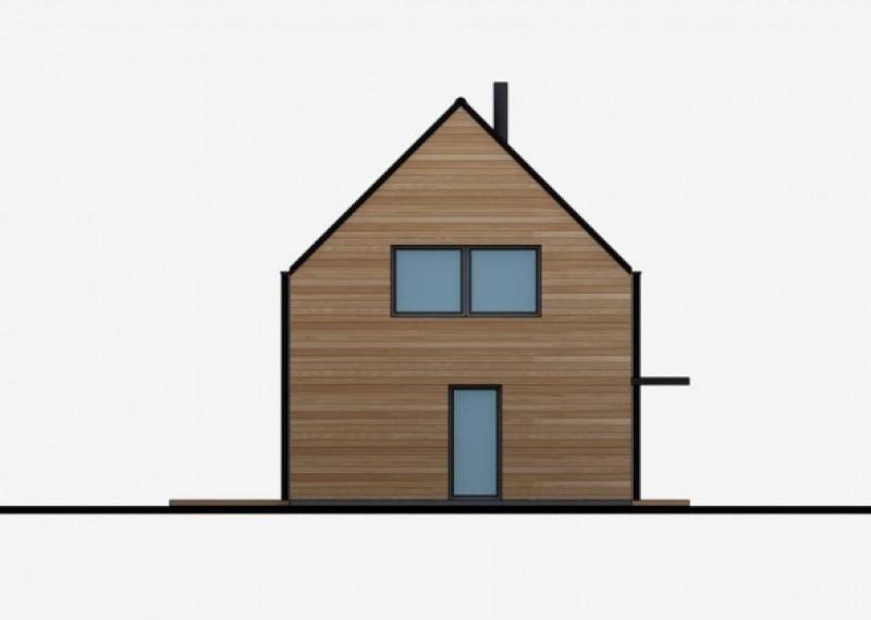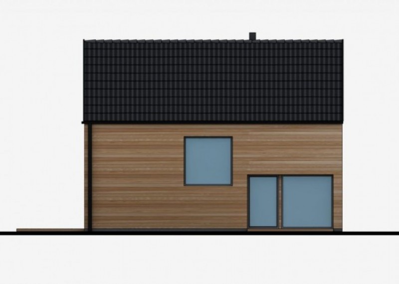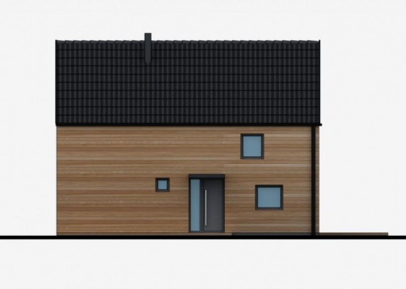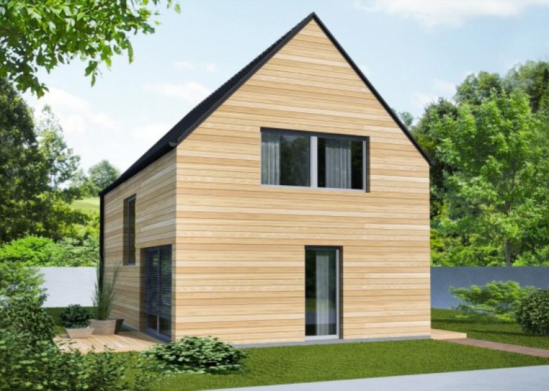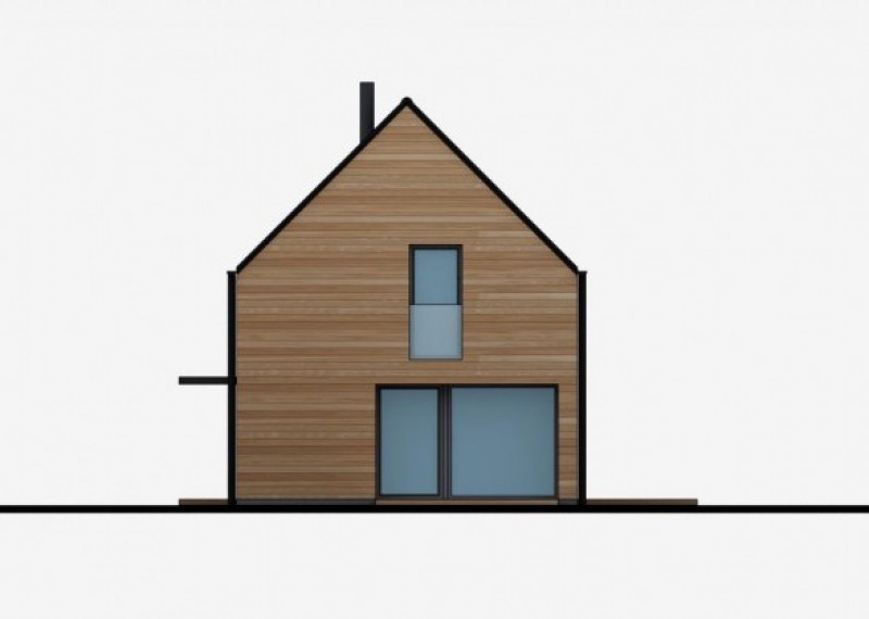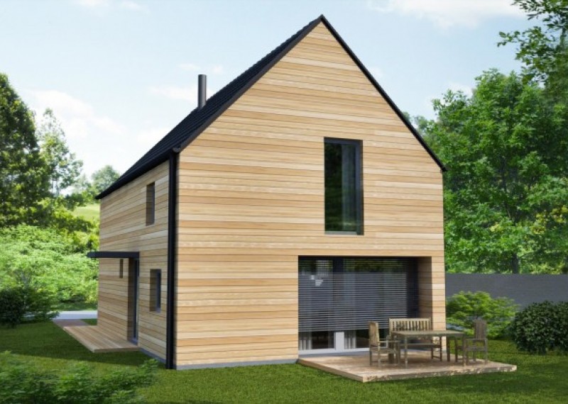 Jednoduchý, kompaktní rodinný dům se sedlovou střechou a obytným podkrovím. Použití dřevěného obkladu na fasádě dodává domu atraktivní vzhled a odkazuje na soulad s přírodou.