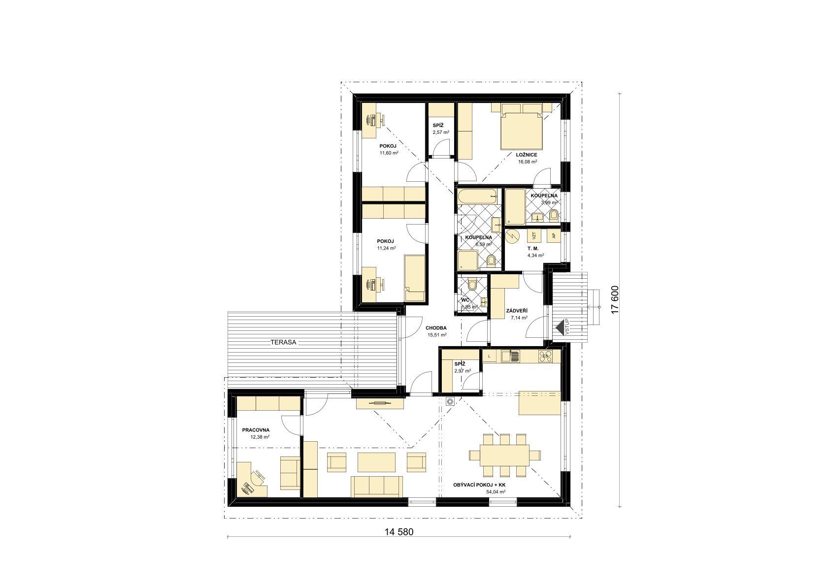 Pokud vám typové řešení v některých parametrech nevyhovuje, dům může být upraven přesně podle vašich individuálních požadavků.