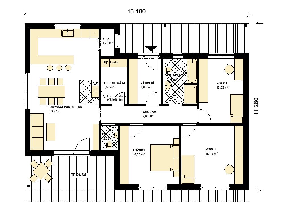 Pokud vám typové řešení v některých parametrech nevyhovuje, dům může být upraven přesně podle vašich individuálních požadavků.