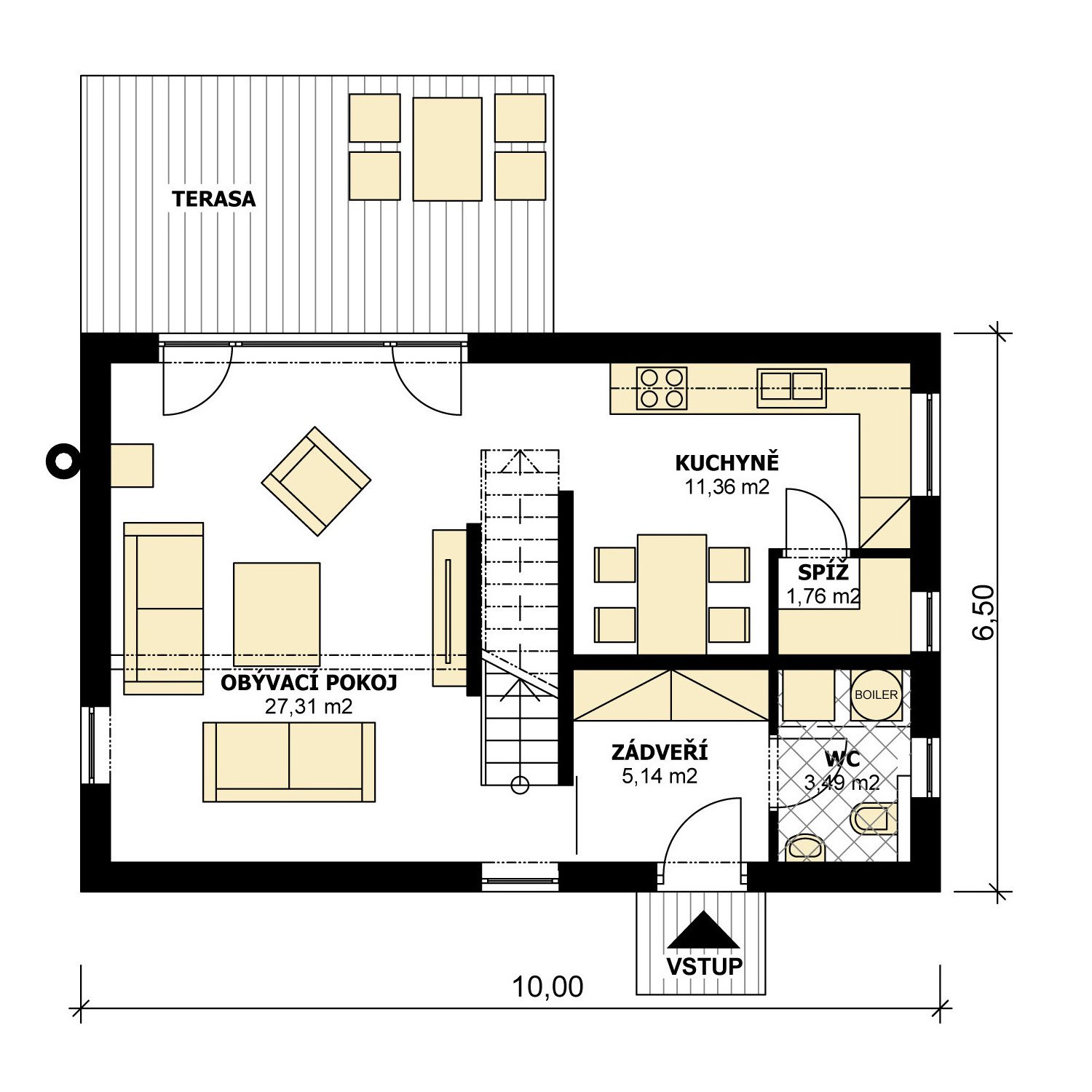 Samostatné WC, Samostatná spíž, Krb, Terasa