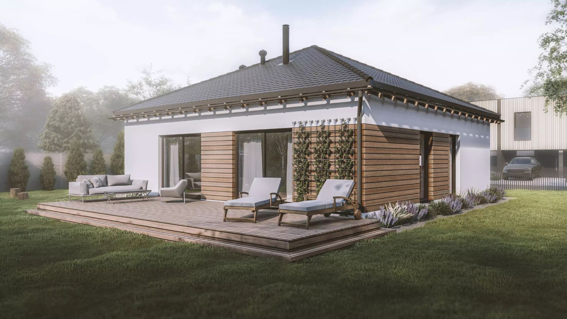 MODULOVÁ DŘEVOSTAVBA - nekonečné množství variací, které se přizpůsobí jakémukoliv individuálnímu požadavku. Moduly jsou vyráběny ve specializovaných halách a následně převáženy přímo na místo stavby. Výstavba domu je tak velmi rychlá a nezávislá na ročním období.
