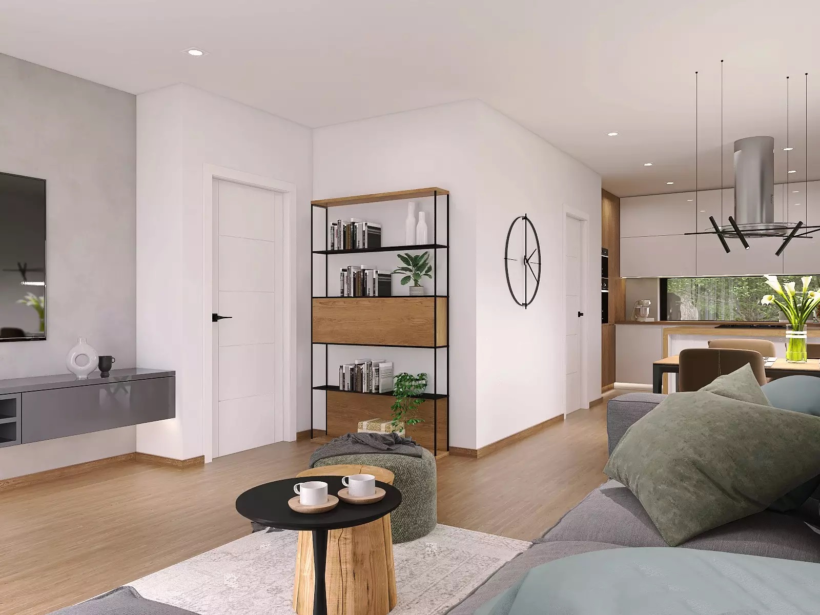 Obývací prostor s jídelnou a kuch. koutem