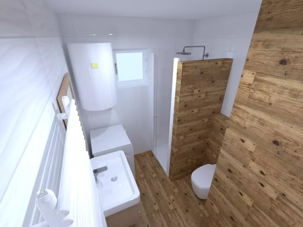 V domě najdeme obývací pokoj s krbem propojený s jídelnou a kuchyňským koutem. Dále zde najdeme 2 pokoje a koupelnu se sprchovým koutem.