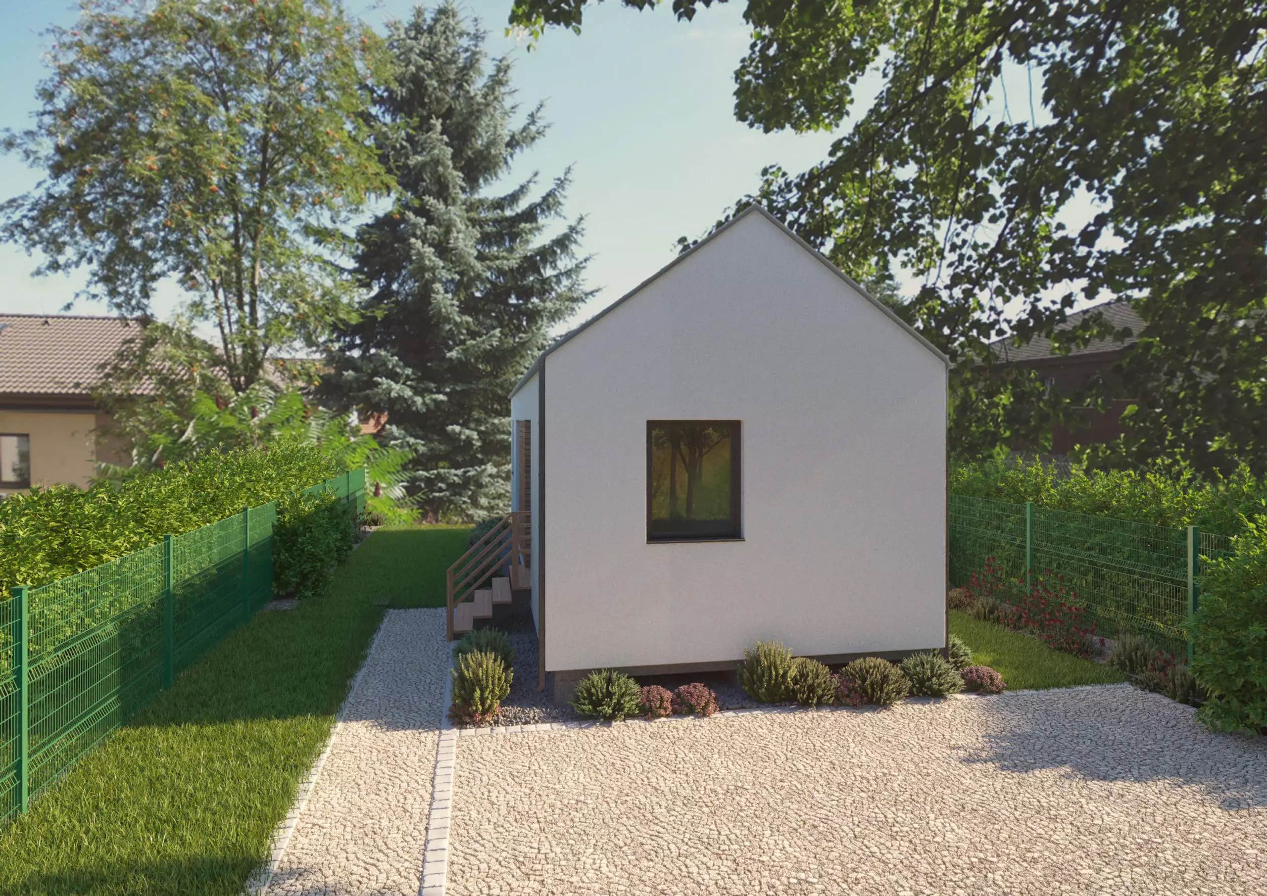 Praktický, malometrážní rodinný dům typu bungalov se sedlovou střechou (lze i pultovou).