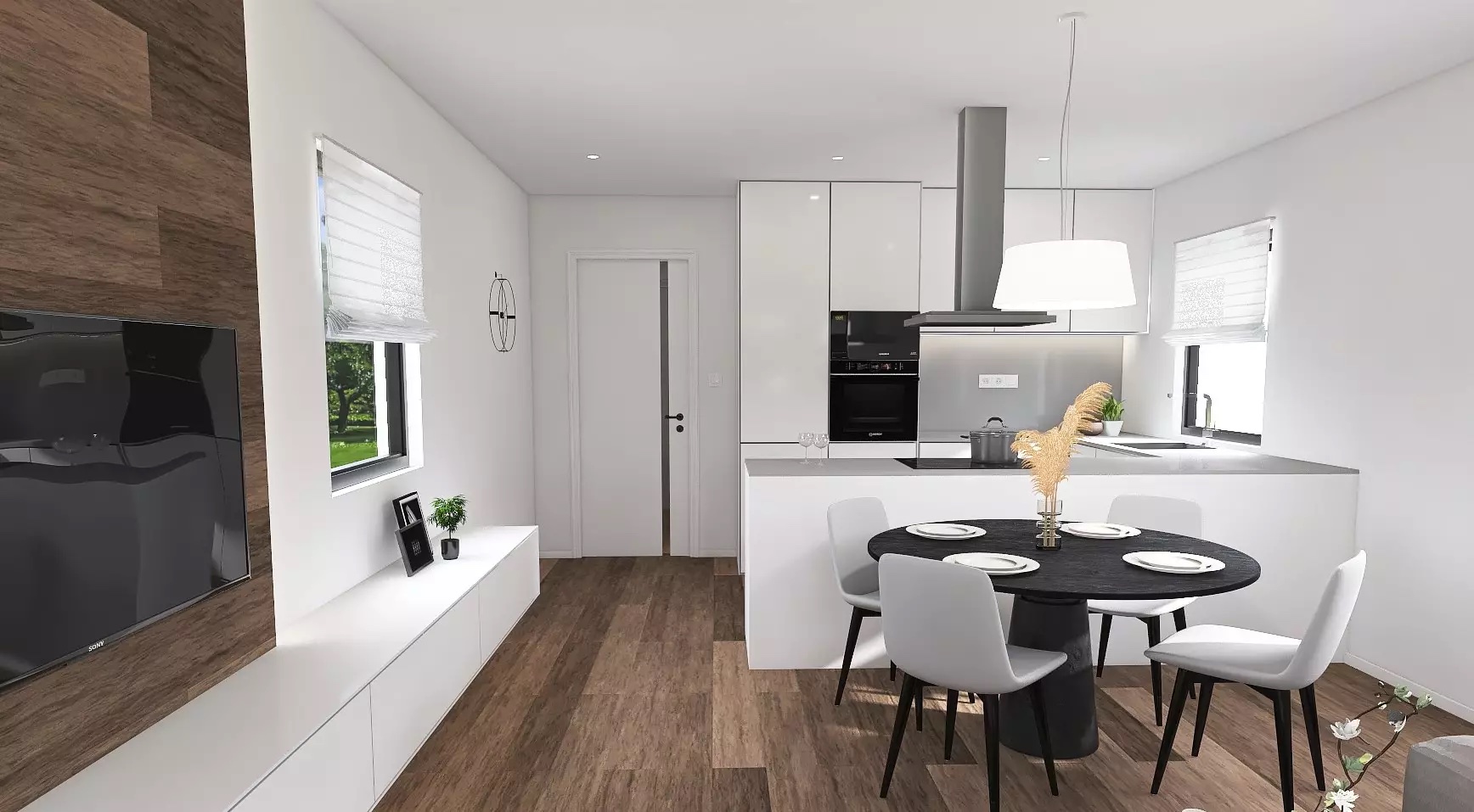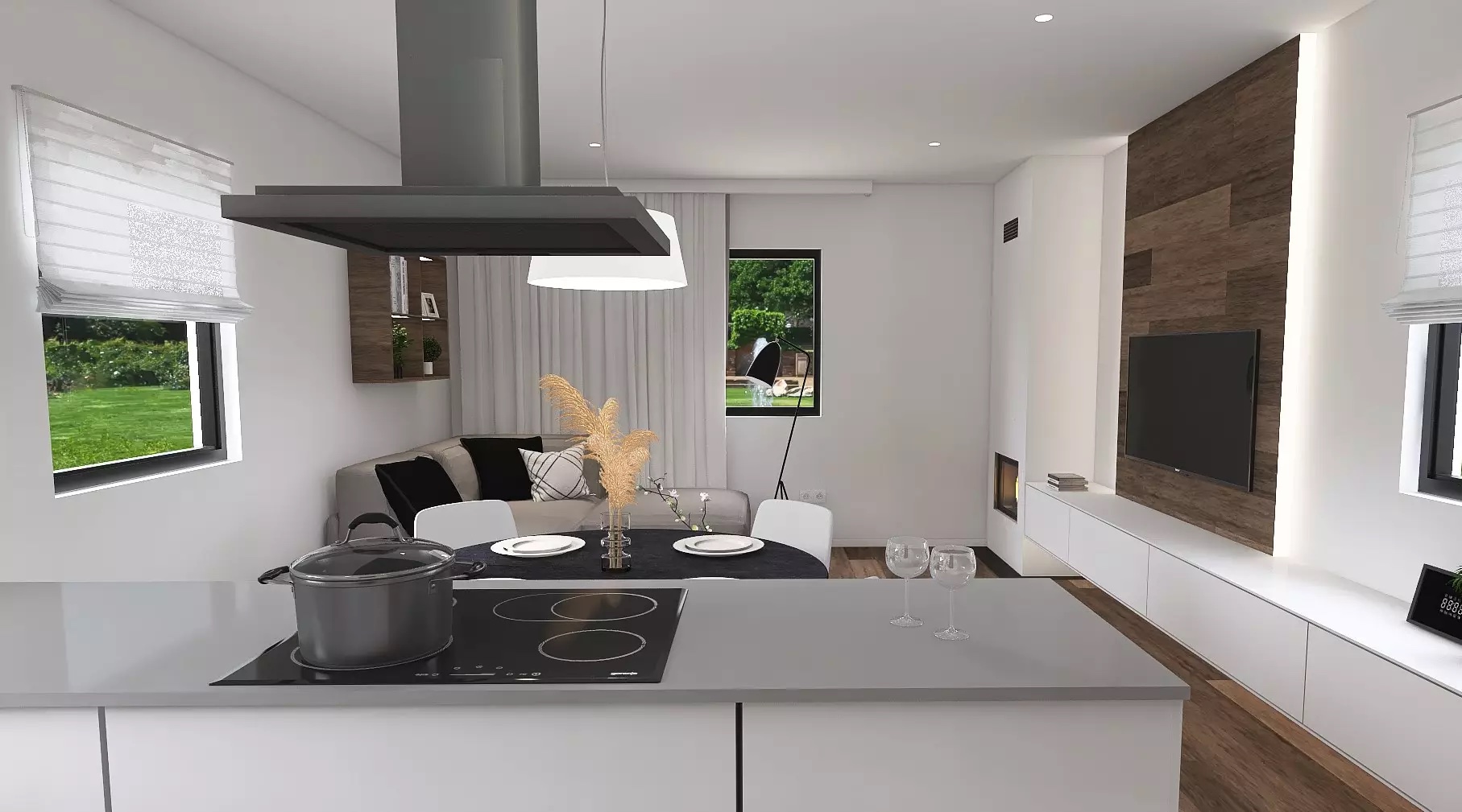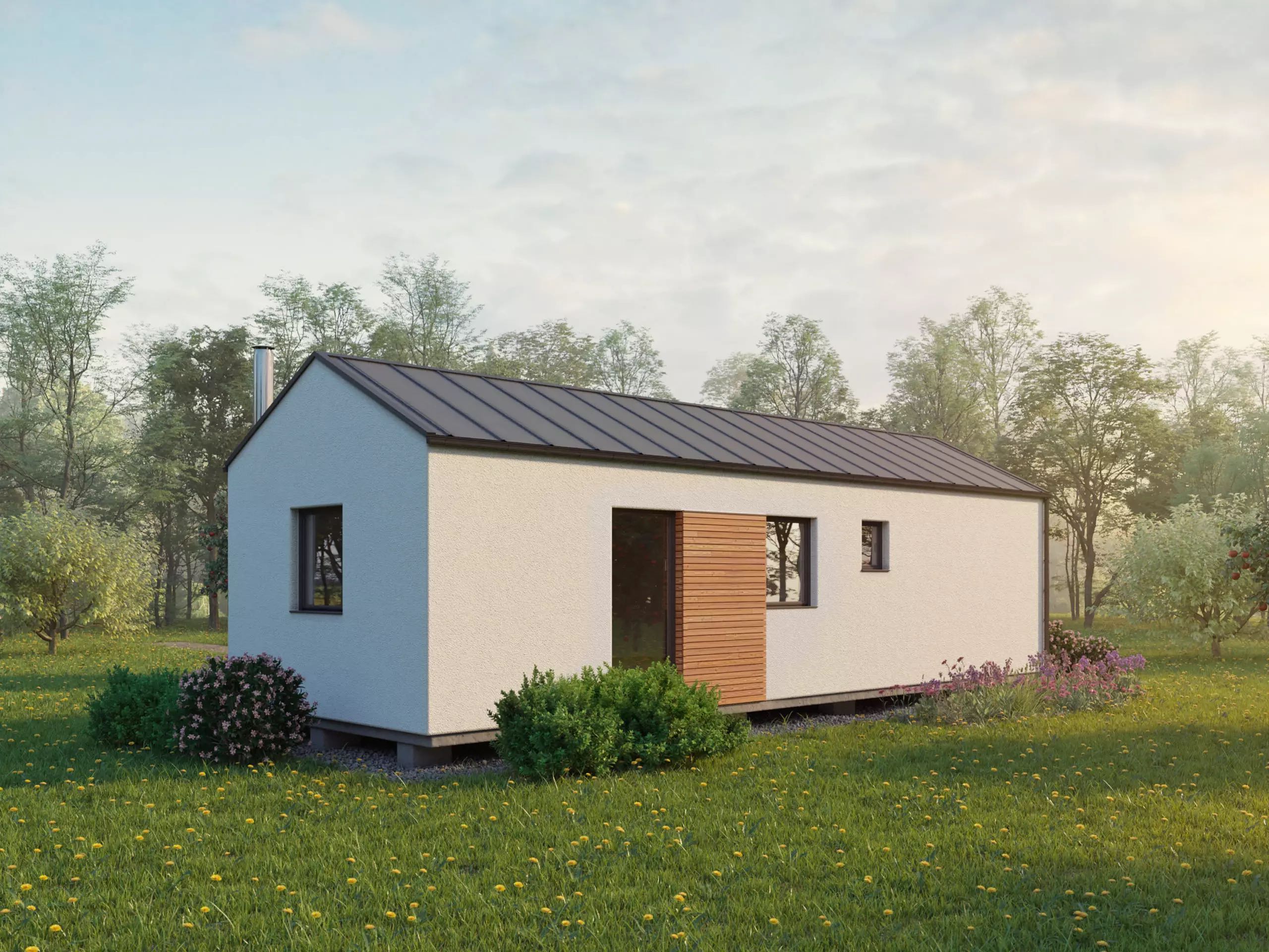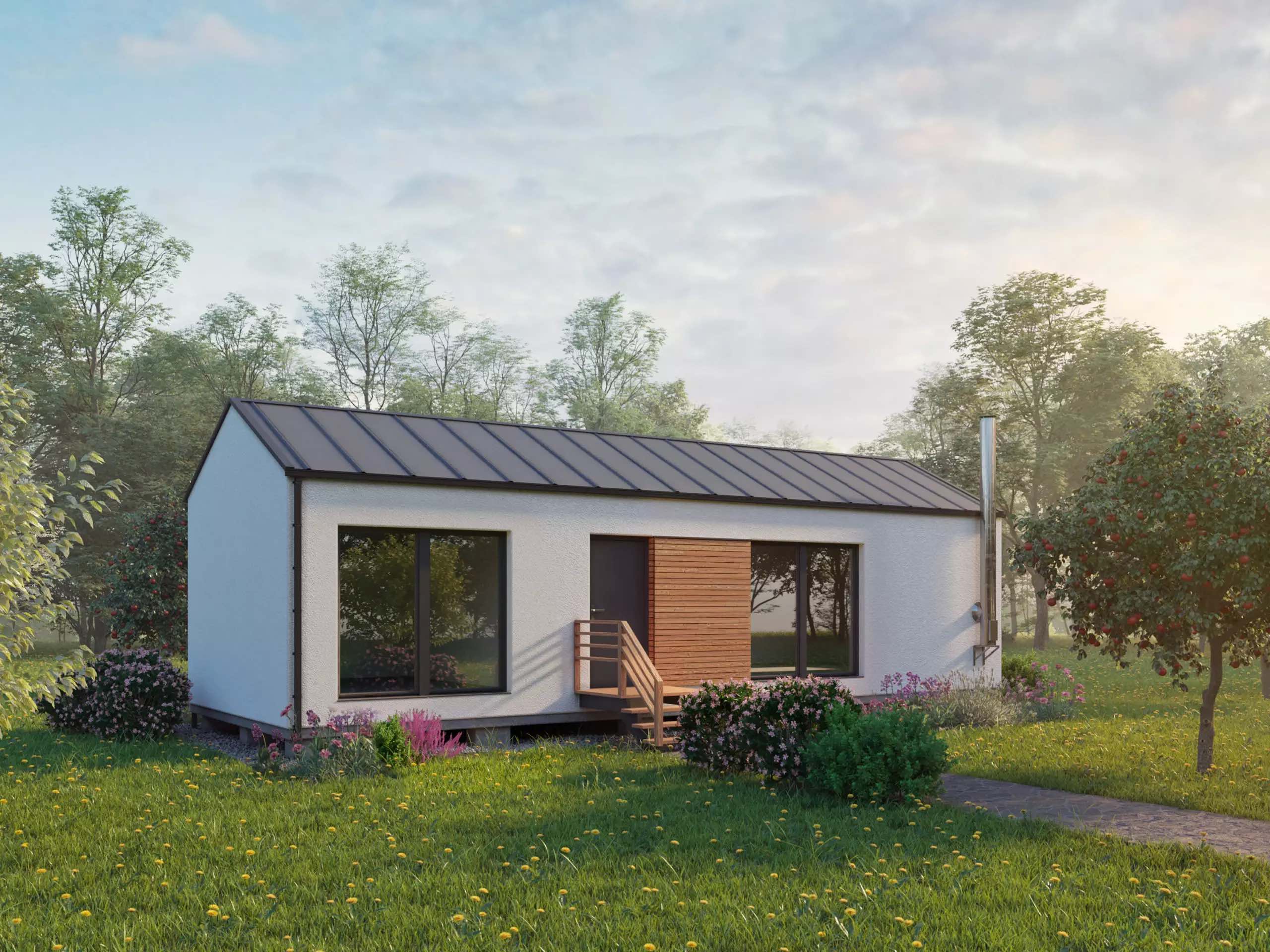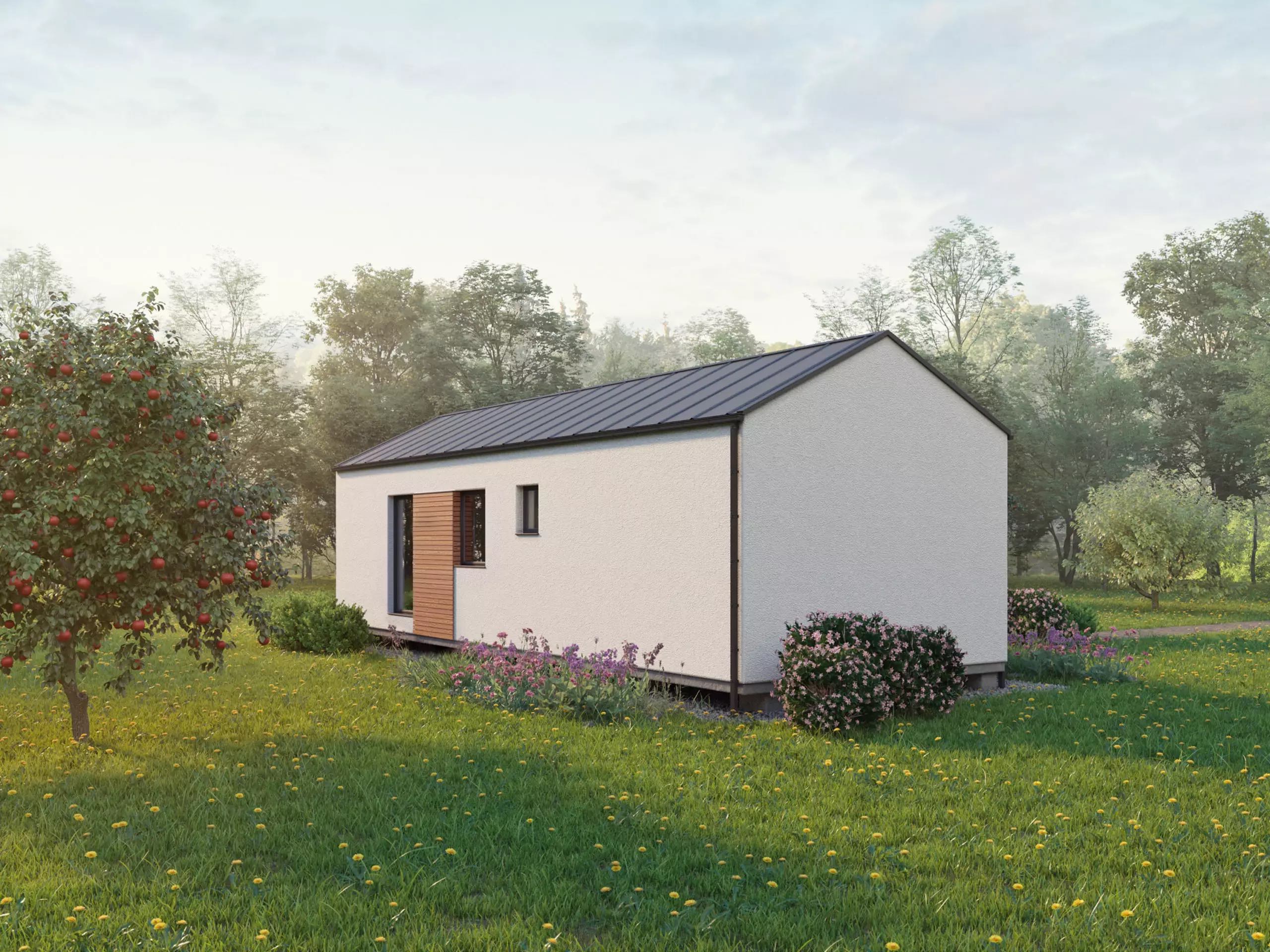 Menší, moderní bungalov s praktickým vnitřním uspořádáním. Tento oblíbený dům patří do kategorie dřevostavby na klíč.