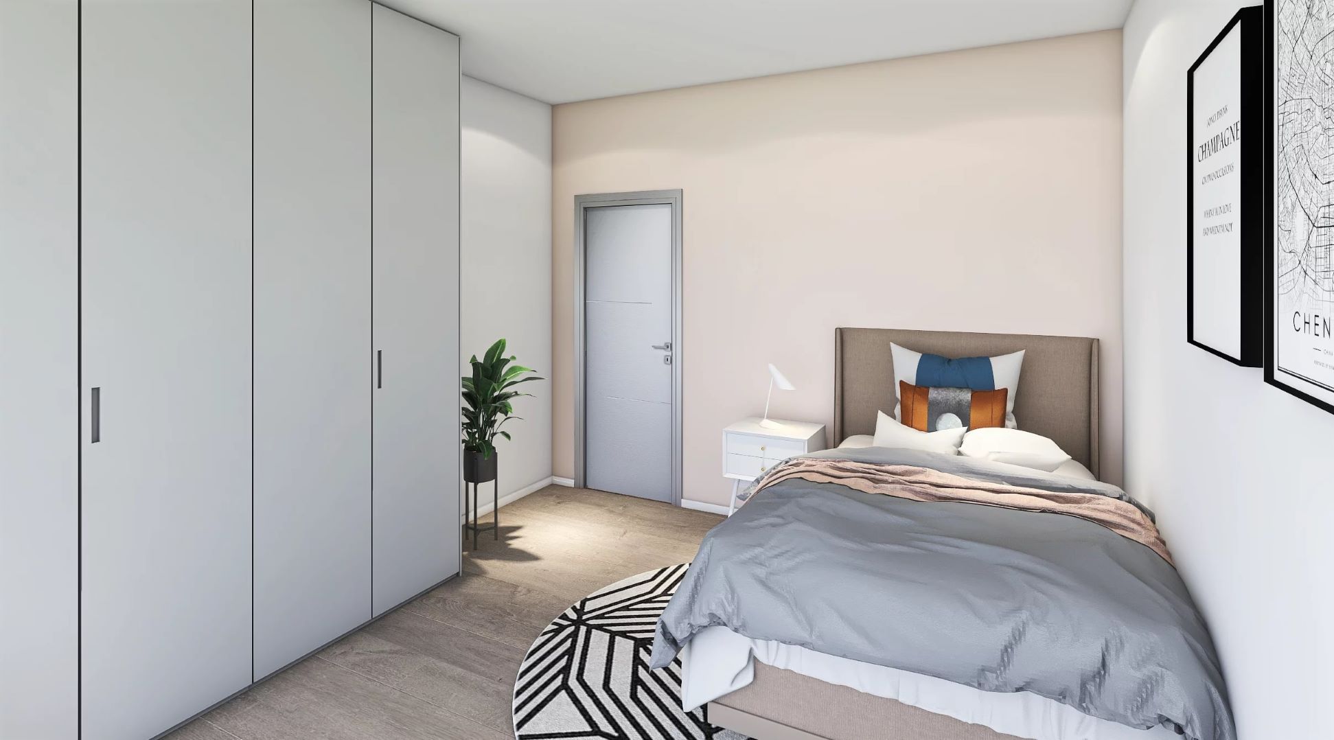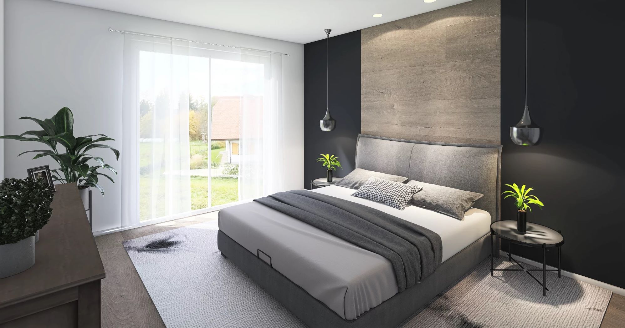 V privátní části domu jsou umístěny 2 dětské pokoje a velkorysá ložnice rodičů s vlastní koupelnou a šatnou. Další, nadstandardně velká koupelna s vanou i sprchovým koutem je přístupná z chodby.