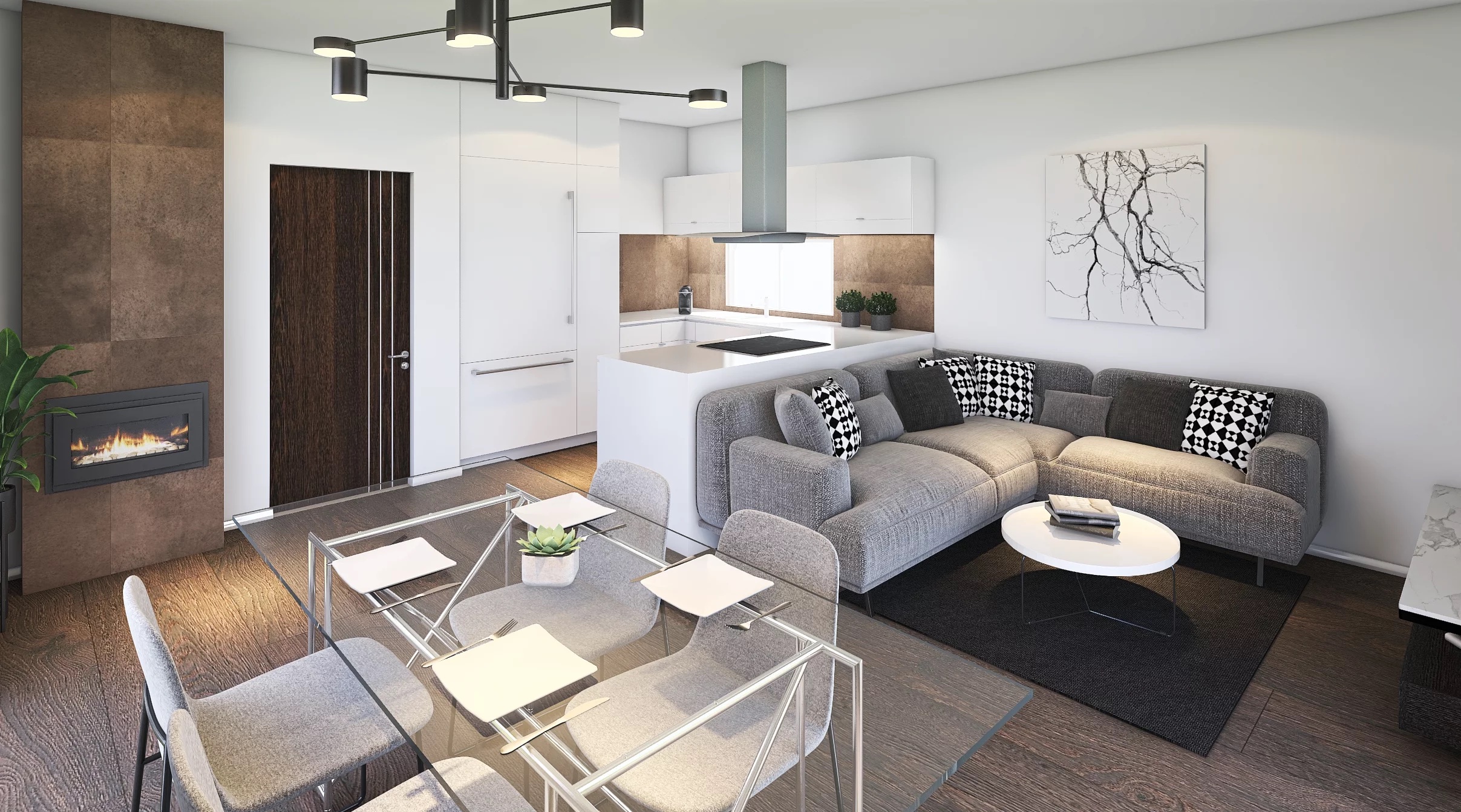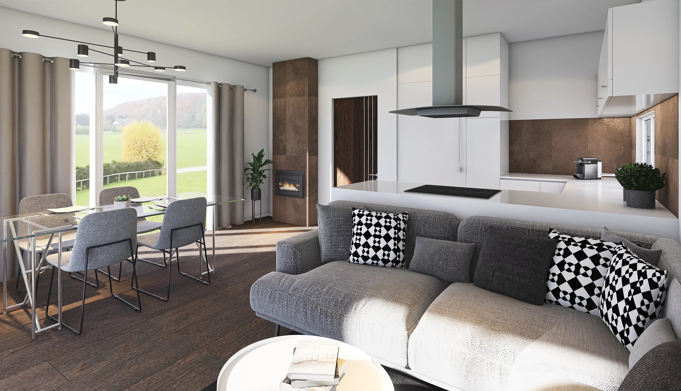 Obývací prostor s jídelnou a kuch. koutem