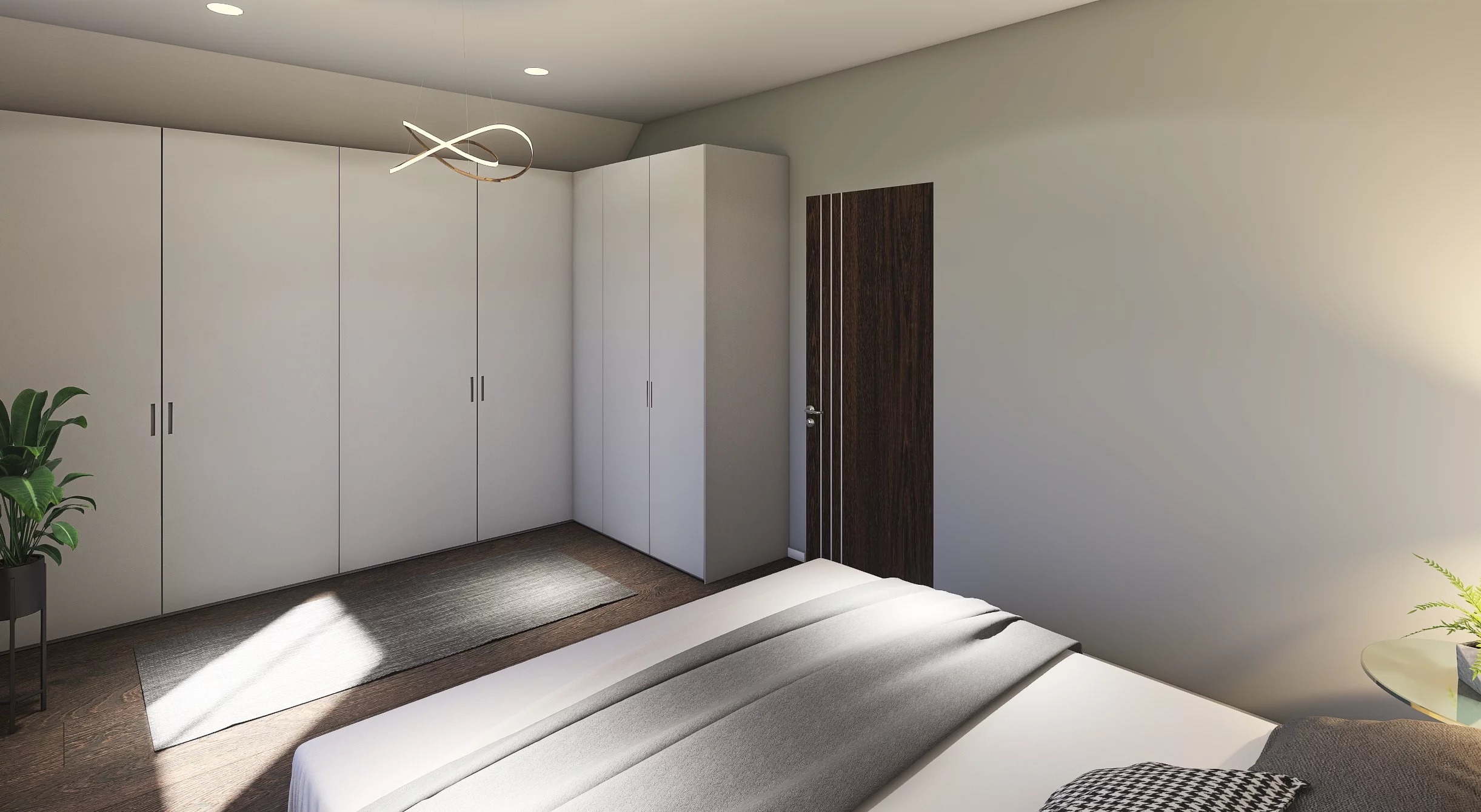 V každém z pokojů je navržen dostatek prostoru pro instalaci vestavěné skříně.