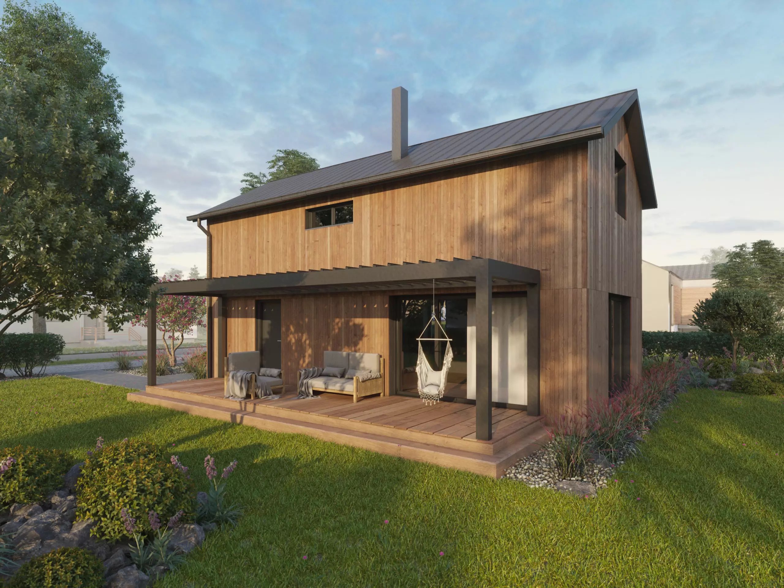 MODULOVÁ DŘEVOSTAVBA - nekonečné množství variací, které se přizpůsobí jakémukoliv individuálnímu požadavku. Moduly jsou vyráběny ve specializovaných halách a následně převáženy přímo na místo stavby. Výstavba domu je tak velmi rychlá a nezávislá na ročním období.