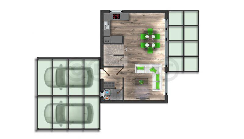 Cena zahrnuje projektovou dokumentaci, realizaci základové desky, tepelné čerpadlo, centrální větrání s rekuperací, fotovoltaiku a kompletní komínový systém.