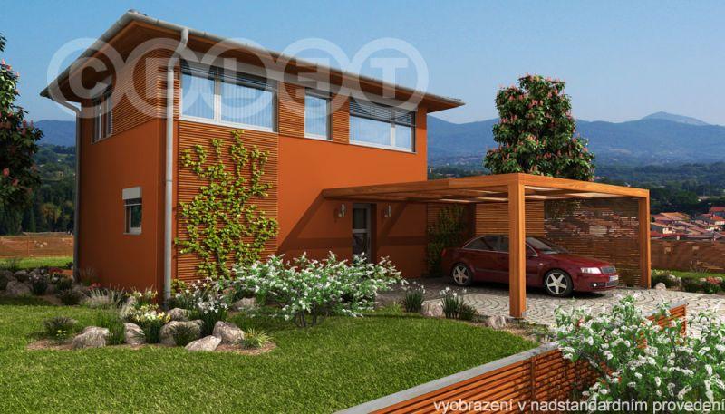 K domu je možné připojit zastřešené parkovací stání pro jedno nebo dvě auta (příplatková položka).