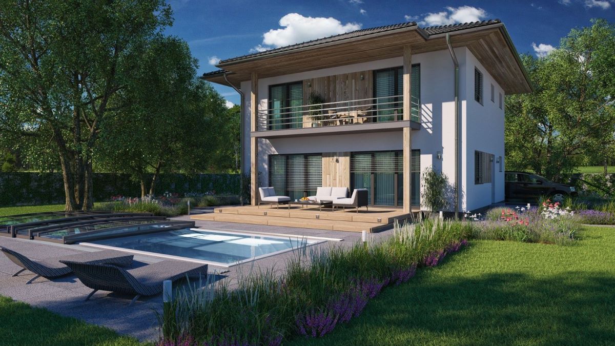 Cena zahrnuje projektovou dokumentaci, realizaci základové desky, tepelné čerpadlo, centrální větrání s rekuperací, fotovoltaiku a kompletní komínový systém.