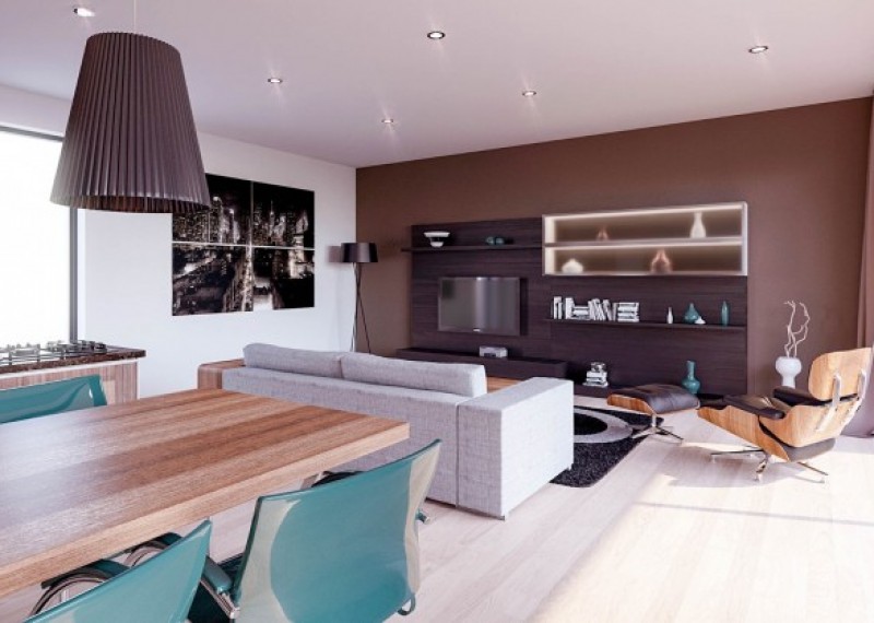 Obývací prostor s jídelnou a kuch. koutem