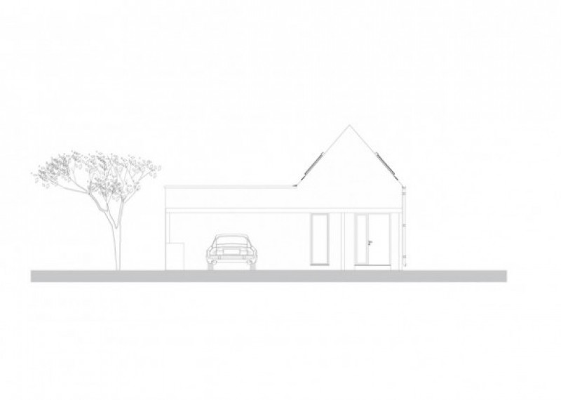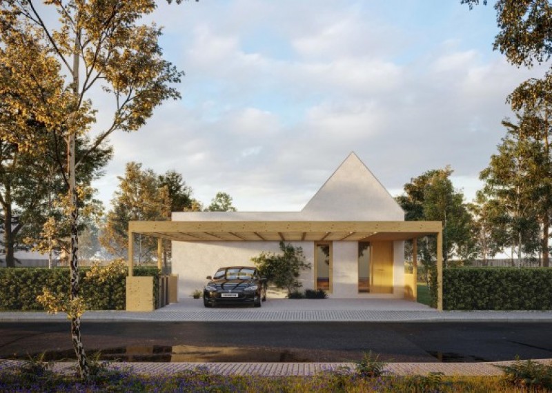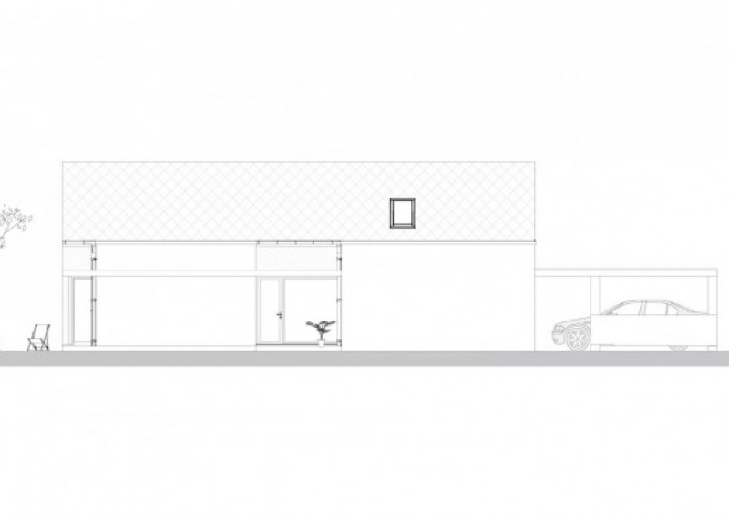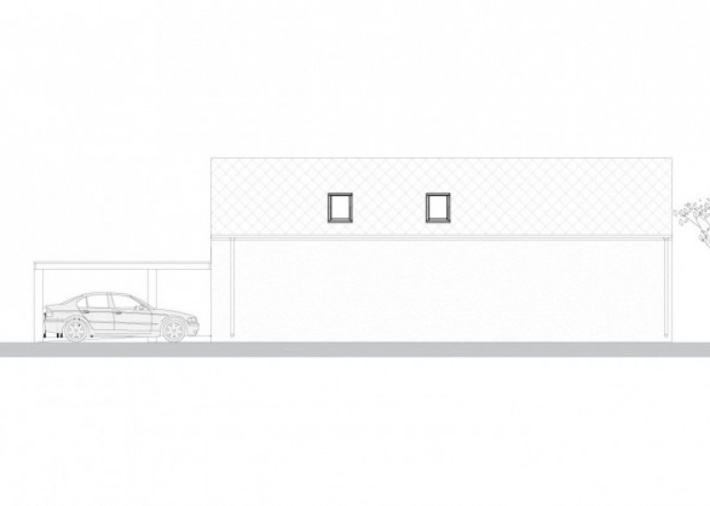 K domu je možné připojit zastřešené parkovací stání, které zároveň chrání vstup do domu (příplatková položka).