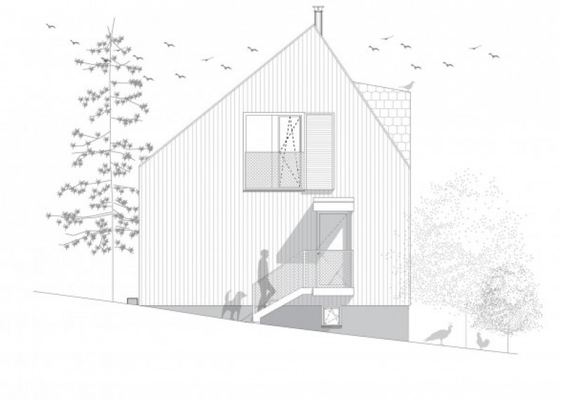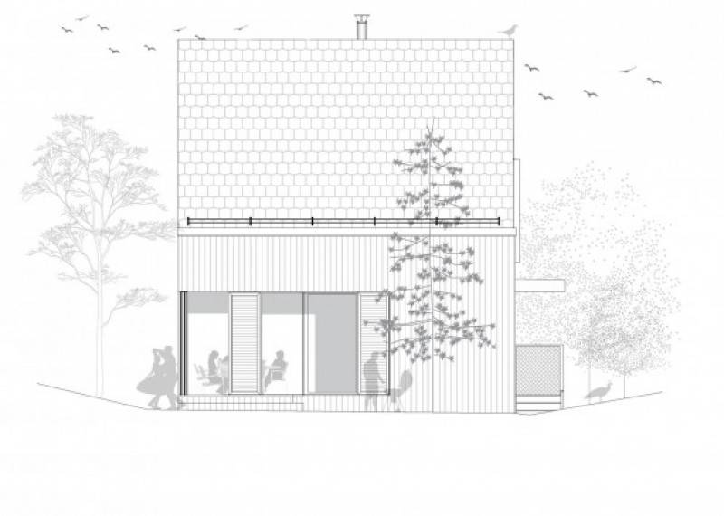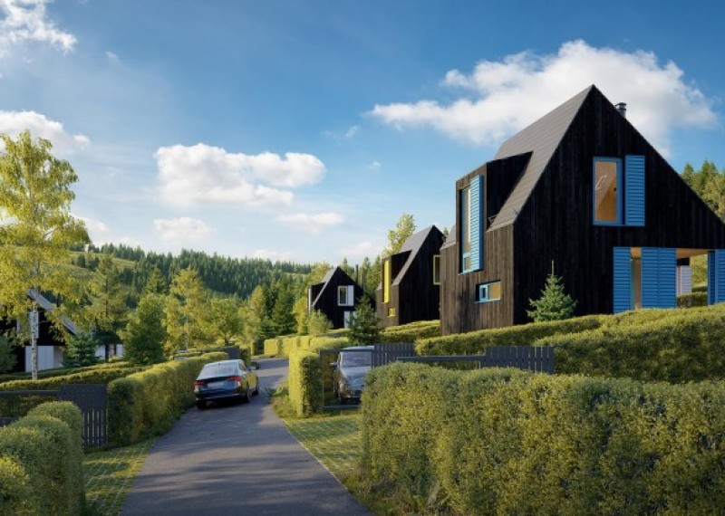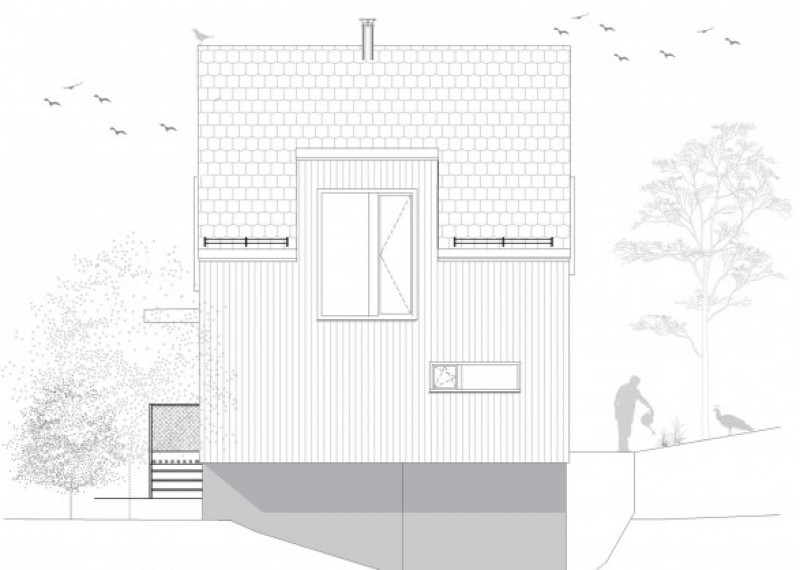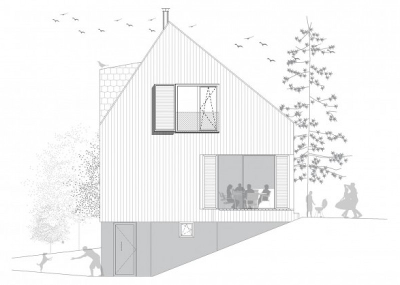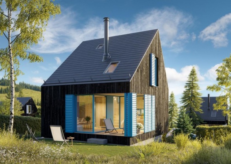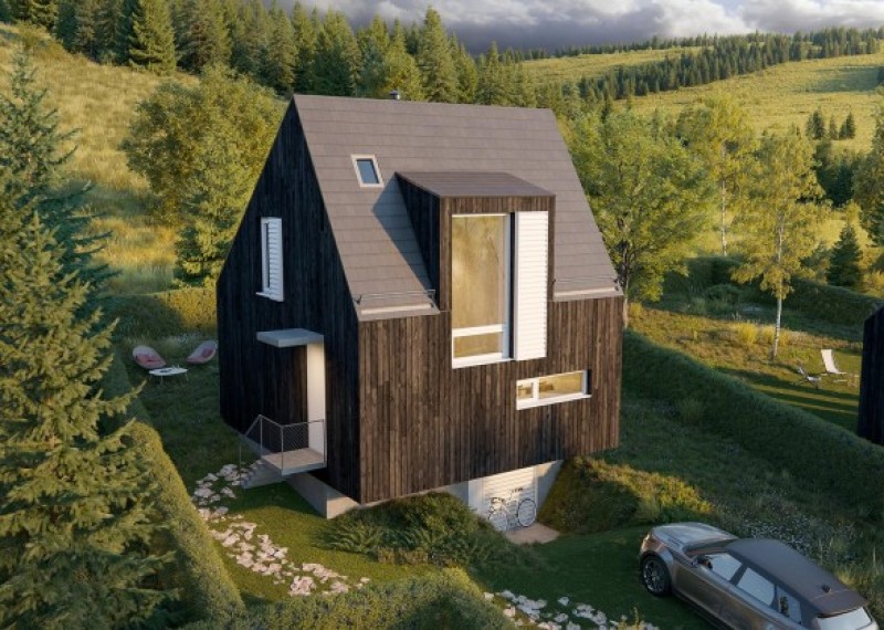 Moderní, dvoupodlažní chata se suterénem, která svými vnitřními prostory uspokojí nároky na rekreaci či bydlení 4-5členné rodiny. Zajímavými architektonickými prvky jsou velký prosklený vikýř, umístěný na mezipodestě schodiště, a dřevěný fasádní obklad.
