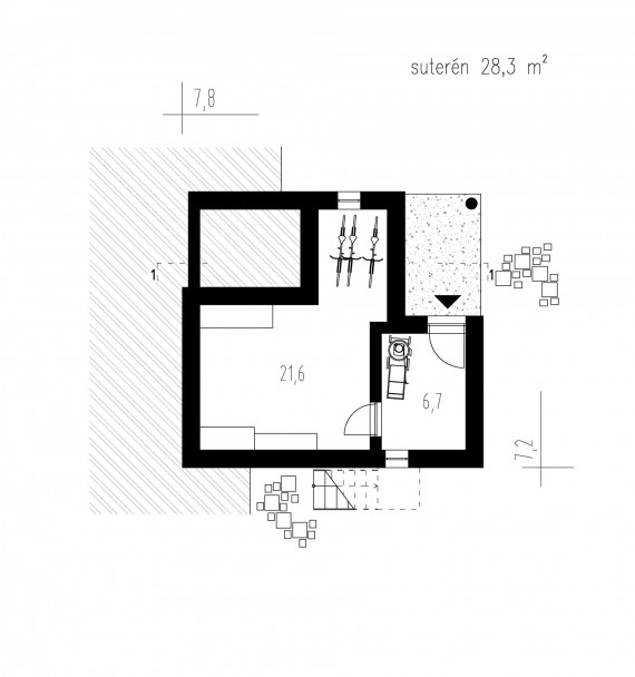 Suterén může sloužit jako lyžárna, kolárna, nebo je zde možné vybudovat wellness se saunou.