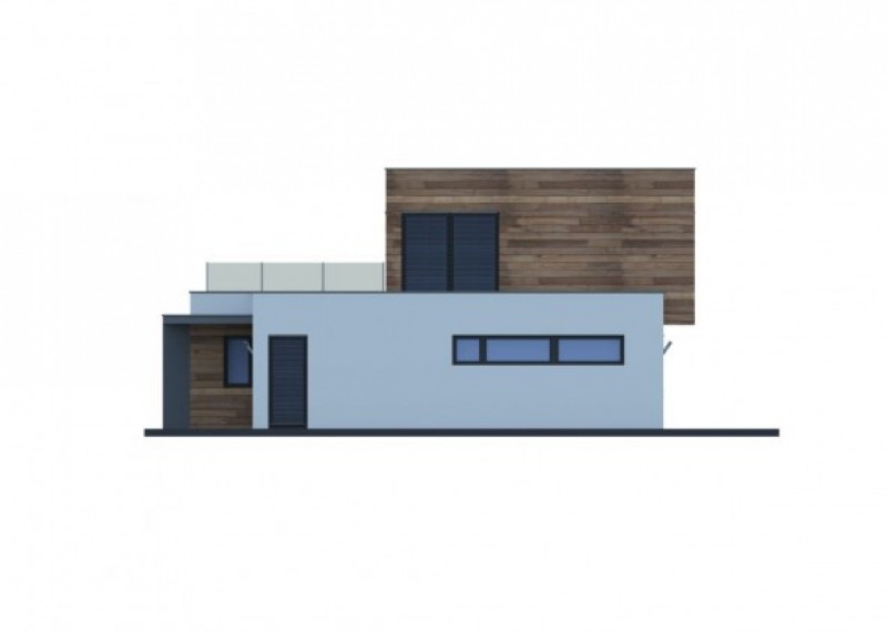 Prostorný, elegantní, dvoupodlažní rodinný dům s plochou střechou, ideální pro pohodlné bydlení velké rodiny. Atraktivní vzhled domu zajišťuje dřevěný obklad na části fasády.