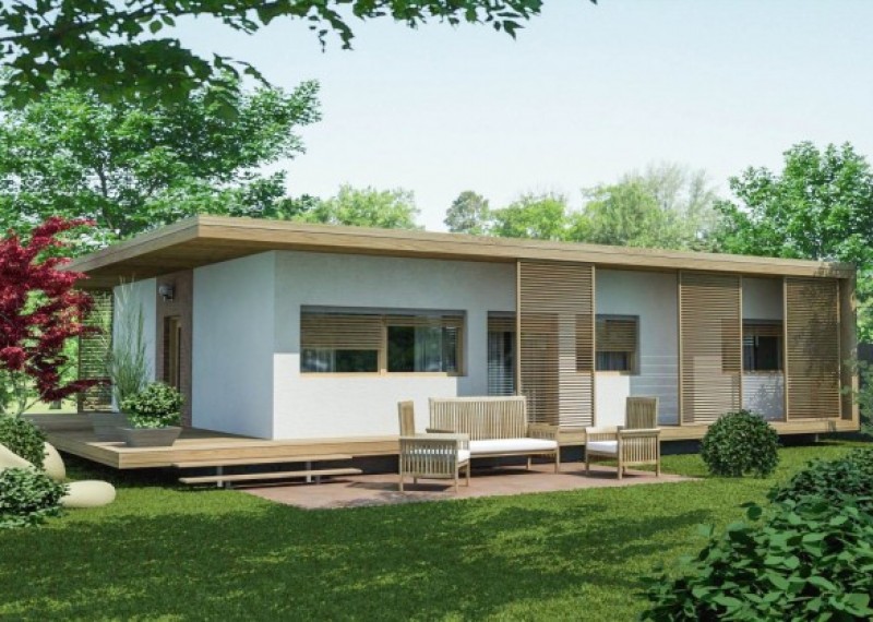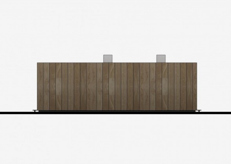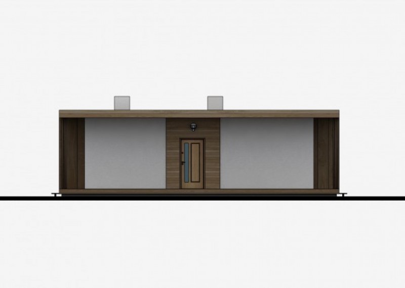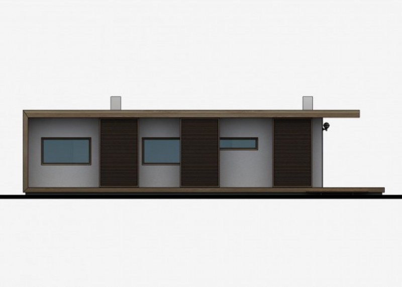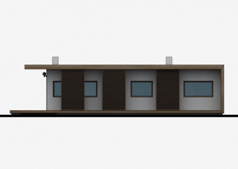 Moderní, přízemní rodinný dům s plochou střechou, určený pro pohodlné bydlení 4členné rodiny. Hlavními architektonickými rysy jsou stínící dřevěné panely a přesah střechy po celém obvodu domu.