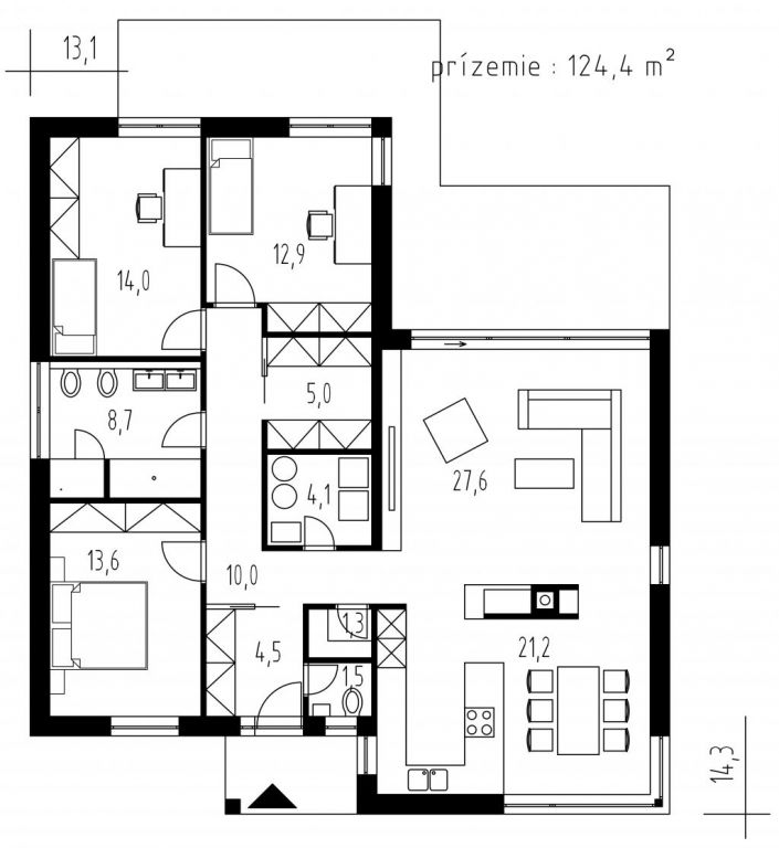 14,3 x 13,1 m