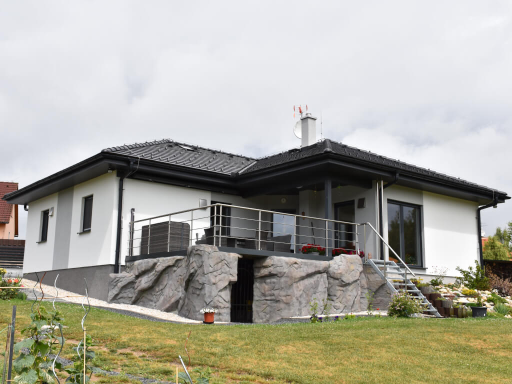 Tepelná izolace zároveň zaručuje pohodlné bydlení s velmi nízkými náklady na vytápění. Zdrojem vytápění je kvalitní a úsporné tepelné čerpadlo vzduch/voda.