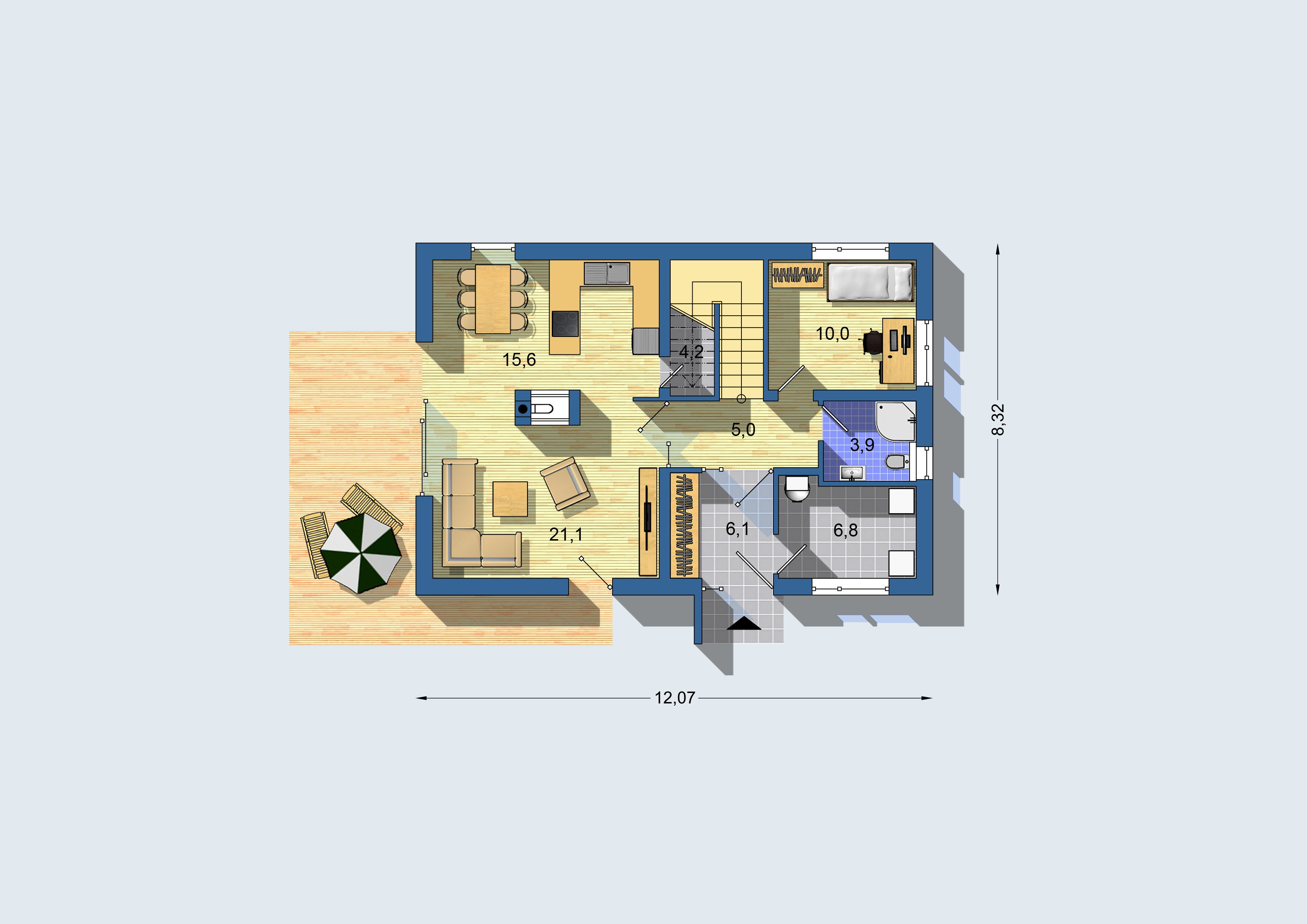 12,07 x 8,32 m