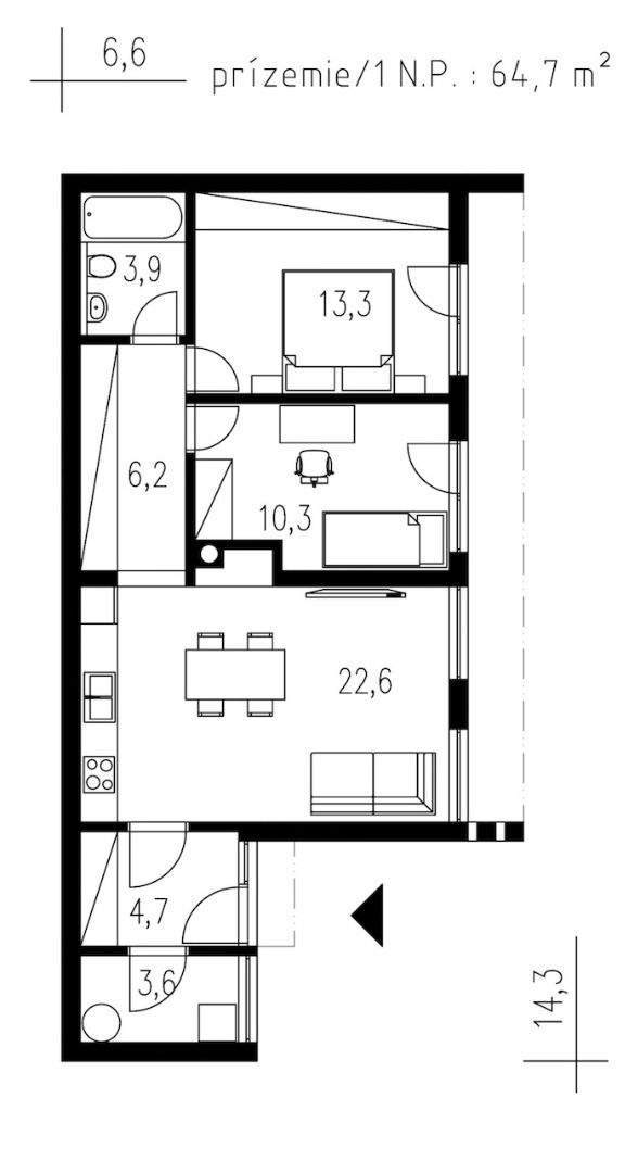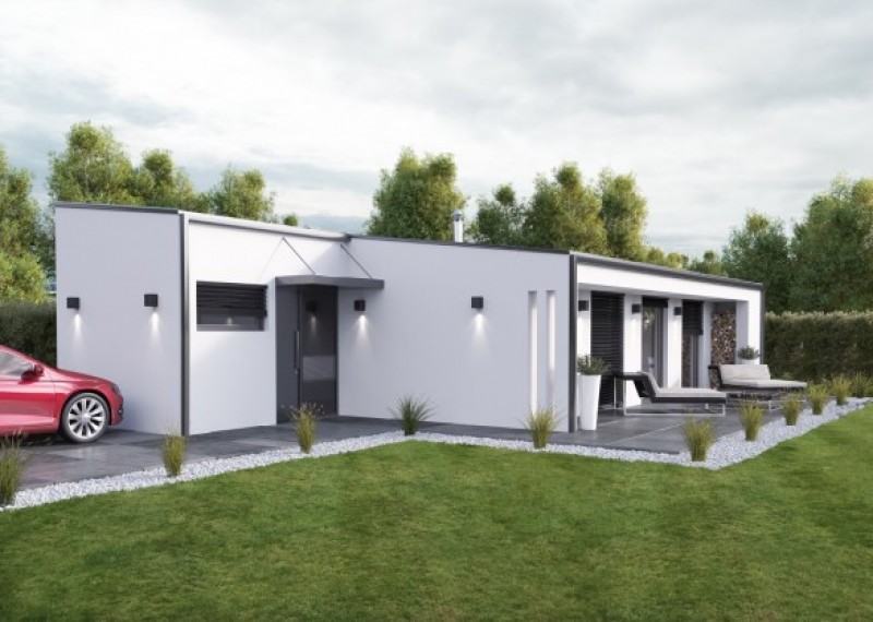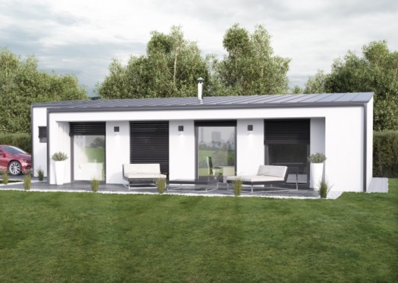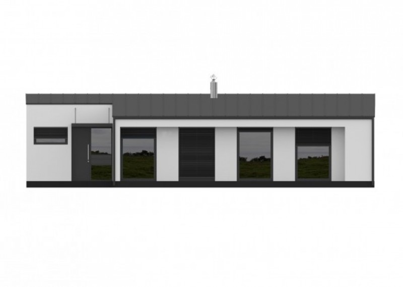 Jednoduchý, nenáročný rodinný dům typu bungalov, ideální pro pohodlné bydlení rodiny s 1-2 dětmi. Charakteristickým prvkem je bohaté prosklení všech obytných místností.