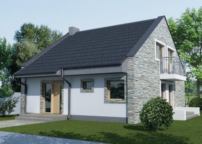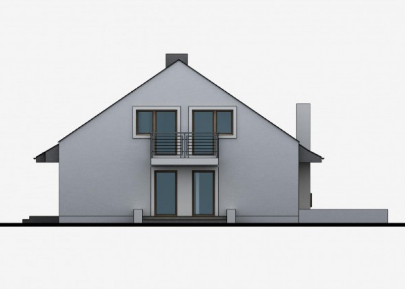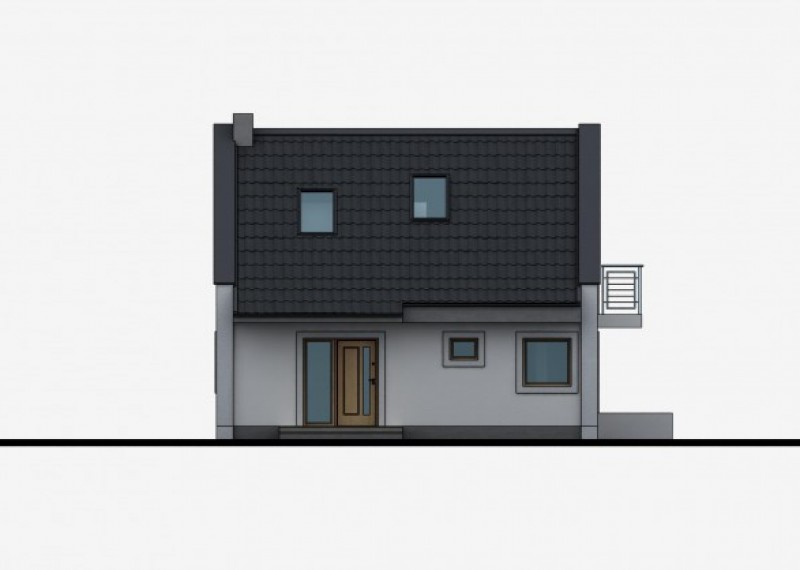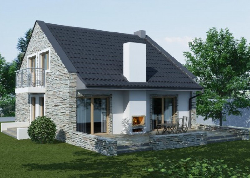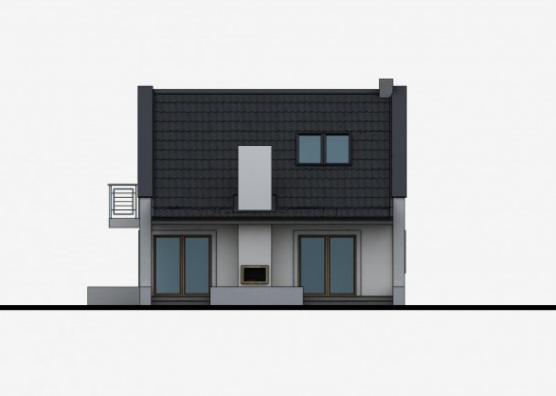 Kompaktní, 4pokojový rodinný dům se sedlovou střechou a obytným podkrovím s balkónem. Zajímavým prvkem je venkovní krb na terase.