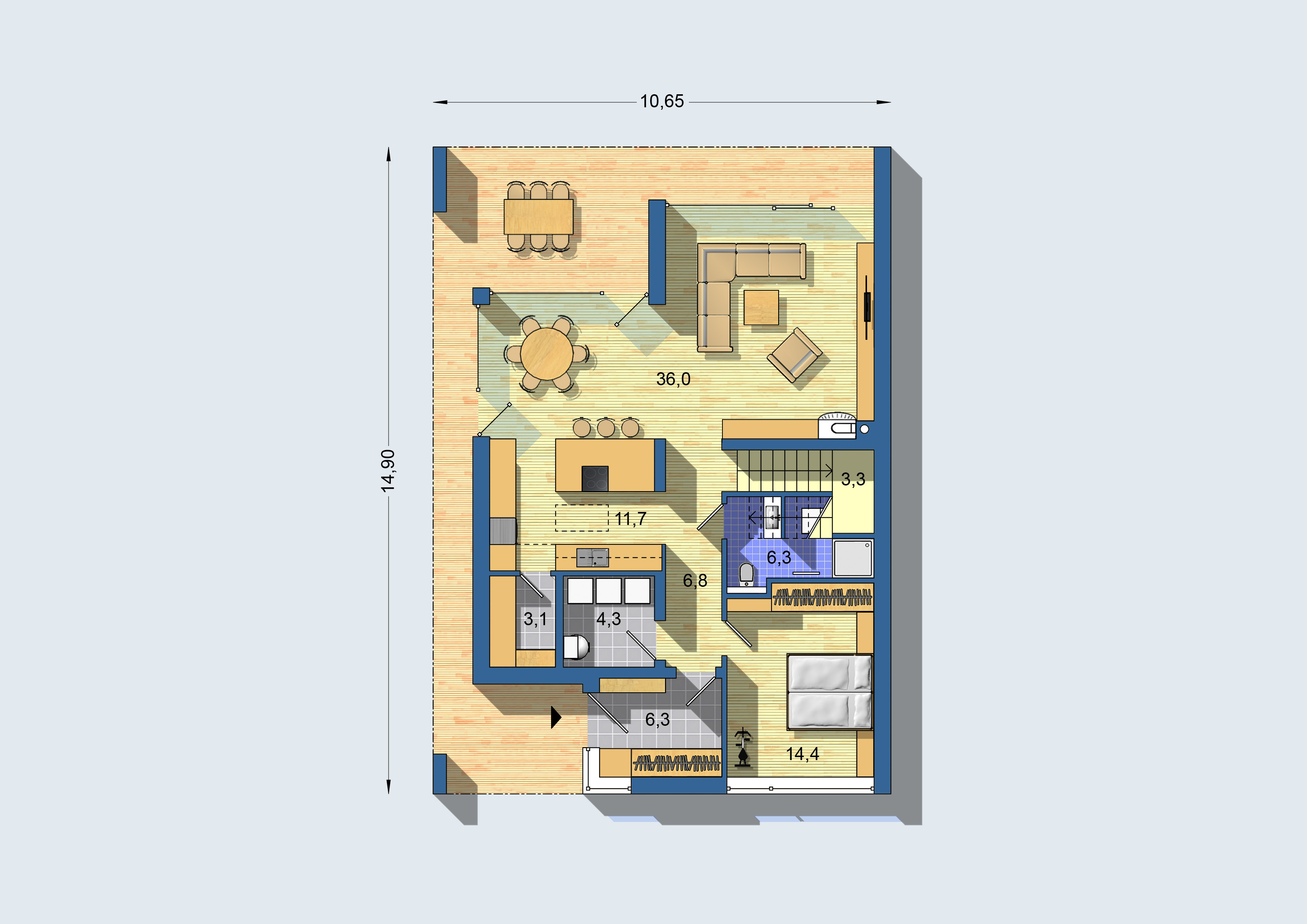14,90 x 10,65 m