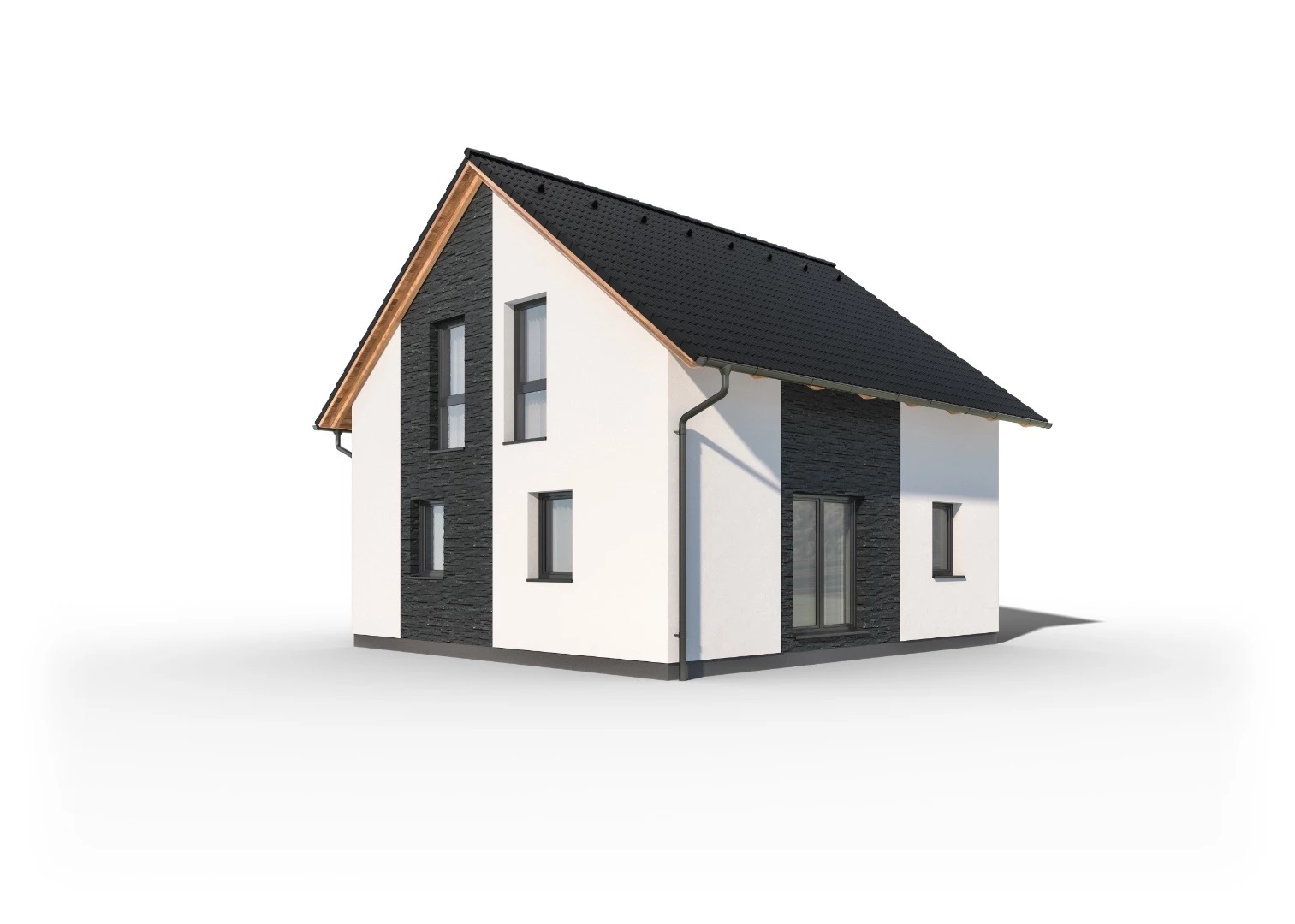 Cena včetně DPH. Cena dále zahrnuje komínový systém, tepelné čerpadlo, podlahové vytápění, centrální rekuperaci vzduchu, dřevěná nebo plasthliníková okna.