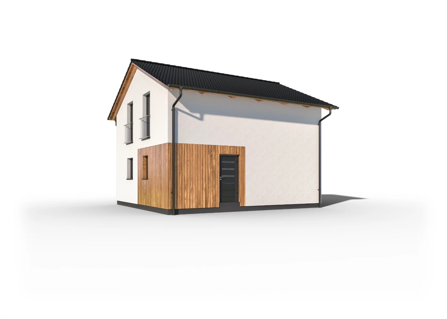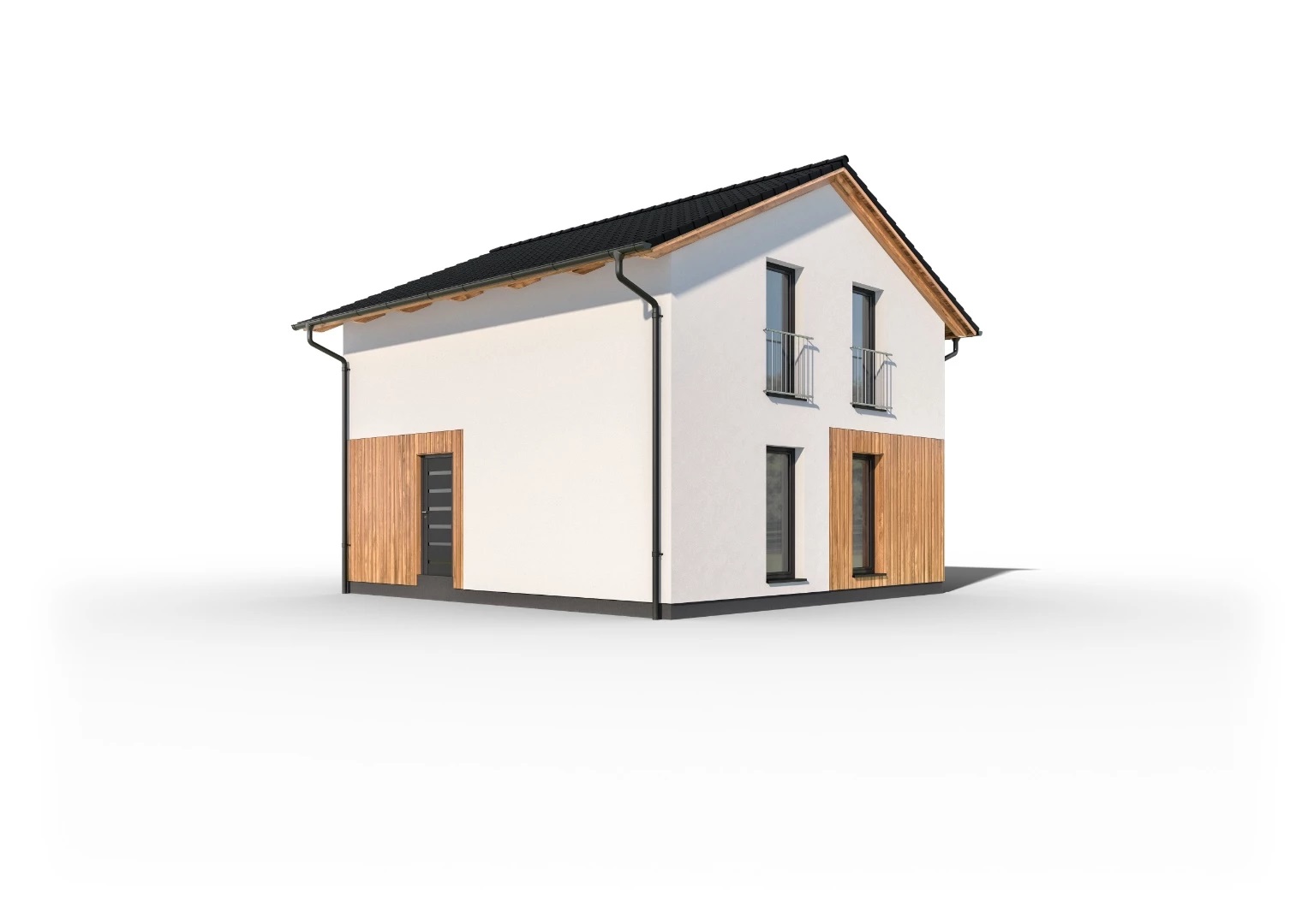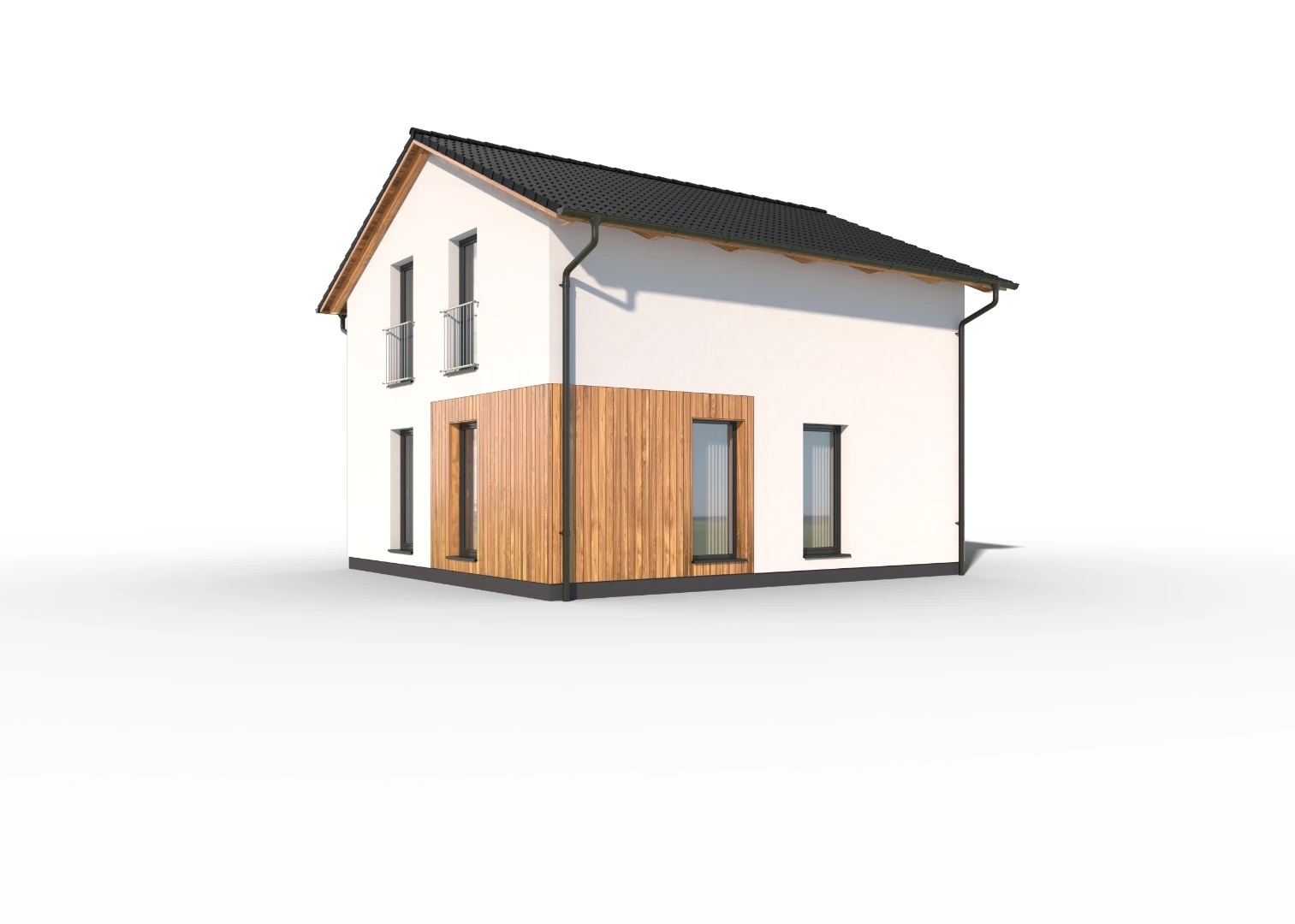 Jednoduchý, 5pokojový rodinný dům se sedlovou střechou a obytným podkrovím. Dům je díky malé zastavěné ploše vhodný i pro umístění na menší parcely.