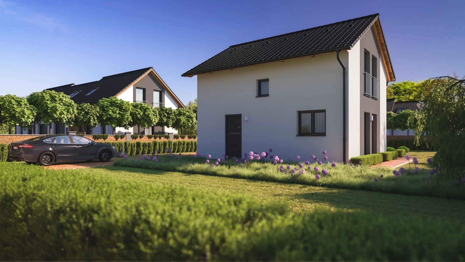 Praktický, dvoupodlažní, 4pokojový dům s efektivně využitým půdorysem a malou zastavěnou plochou. Dům je tak vhodný pro umístění na menší parcely.