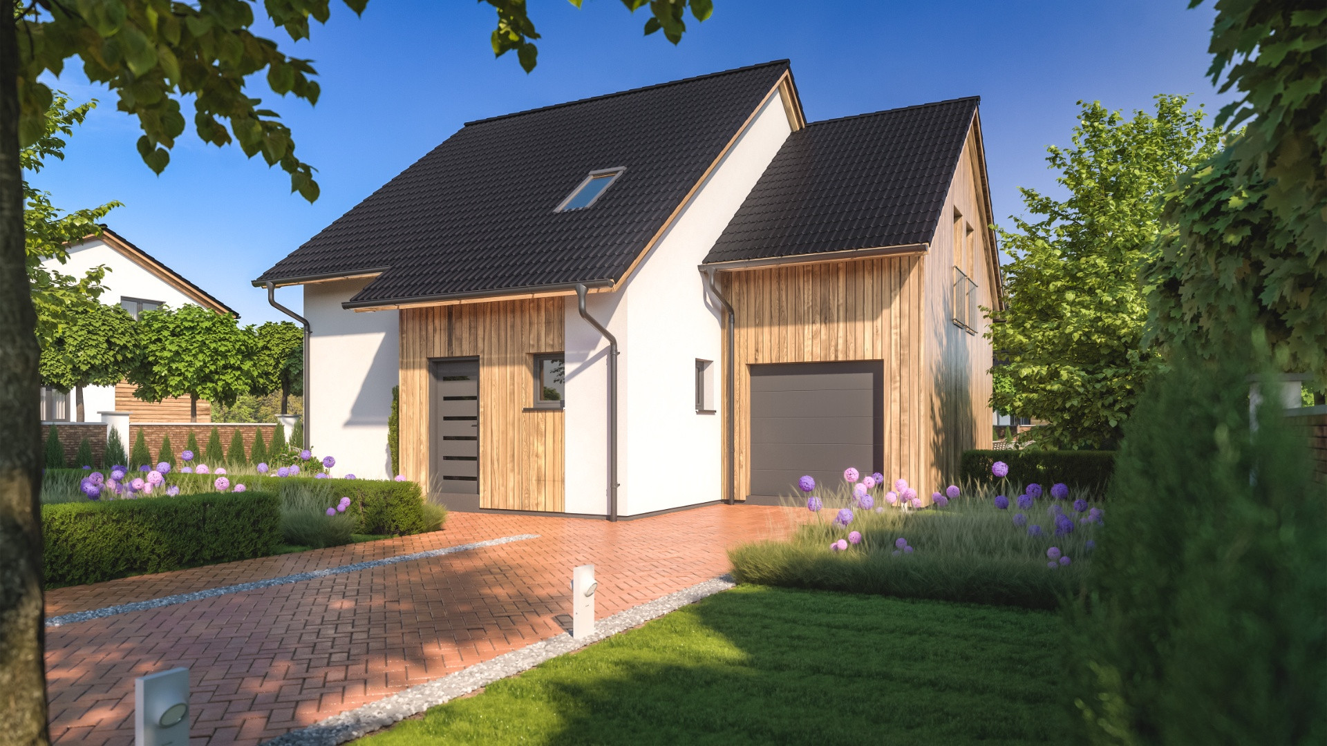 Zajímavý, prostorný, dvoupodlažní rodinný dům s garáží. Dům bude plně vyhovovat potřebám velkých rodin o 5 až 6 členech. Dřevěný obklad na části fasády dodává domu atraktivní vzhled.