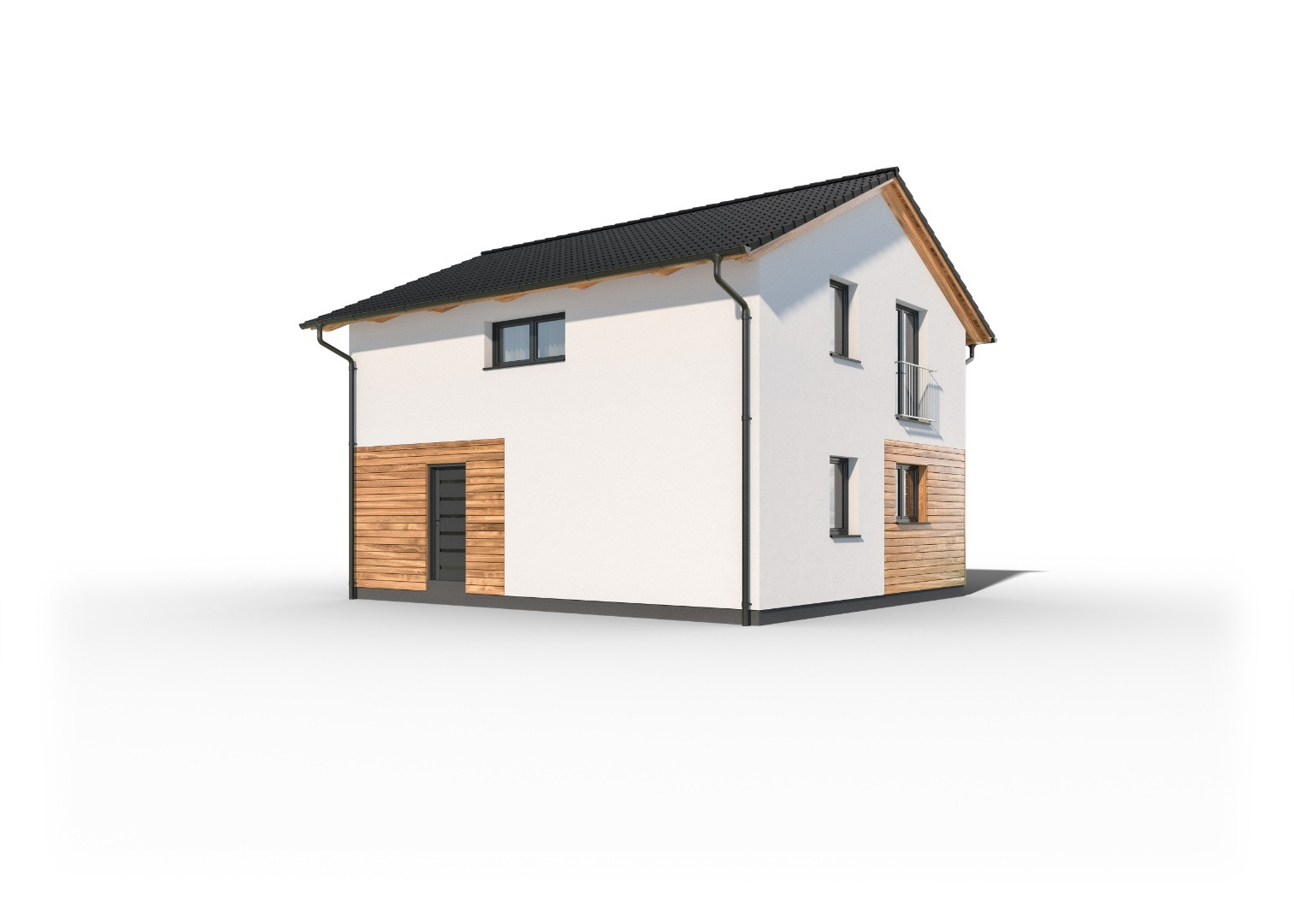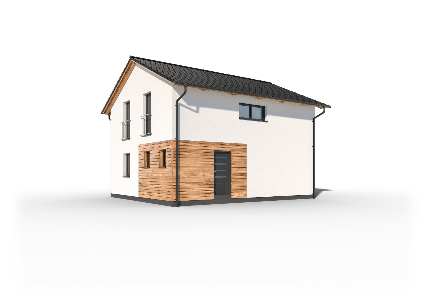 Cena včetně DPH. Cena dále zahrnuje komínový systém, tepelné čerpadlo, podlahové vytápění, centrální rekuperaci vzduchu, dřevěná nebo plasthliníková okna.