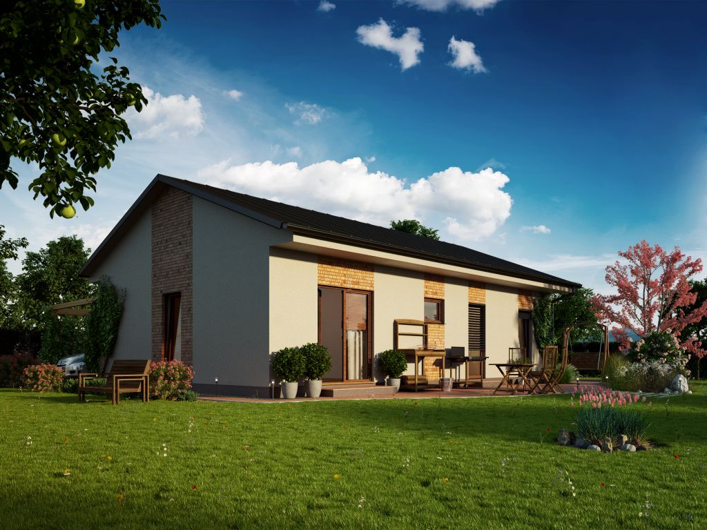 Jednoduchý, 3pokojový bungalov klasického tvaru se sedlovou střechou, který je vhodný i pro umístění na úzké parcely.