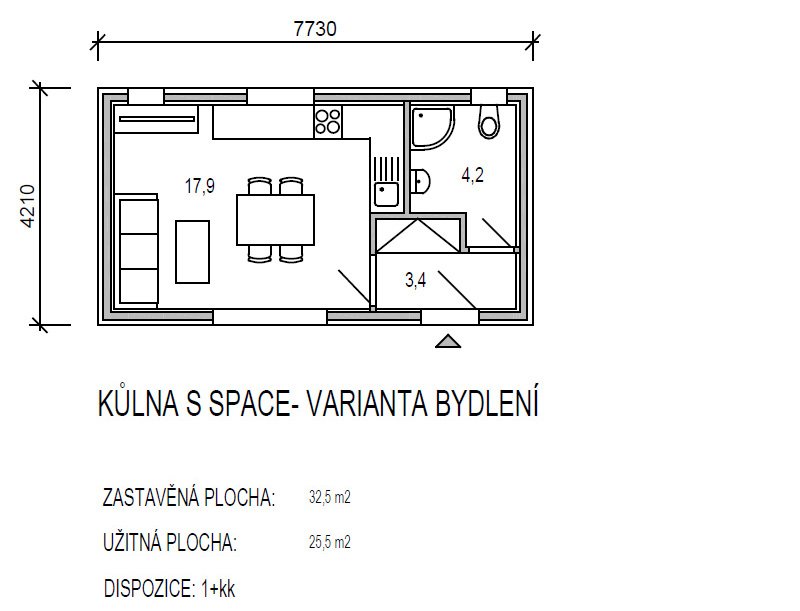 Obytný prostor s jídelnou a kuch. koutem