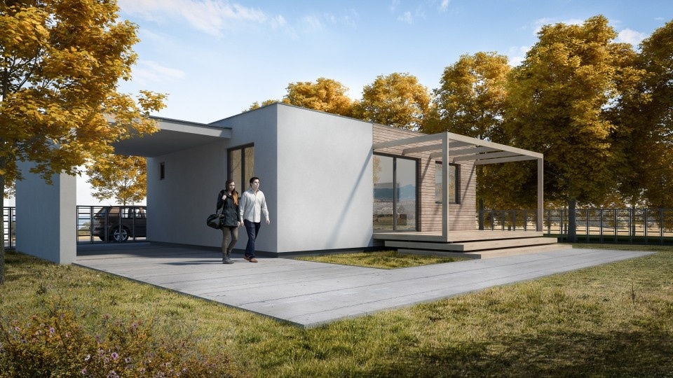 MODULOVÉ DOMY - konstrukční řešení využívá ocelovou konstrukci domu, stěny jsou tvořeny sendvičovými panely.